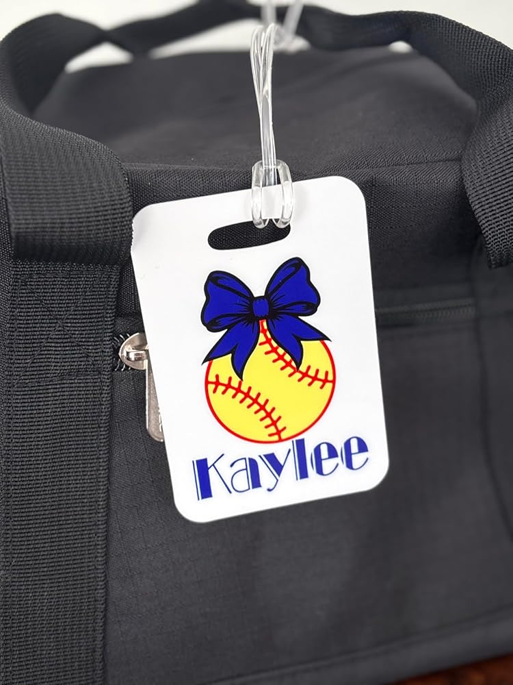 التخصيص: علامة حقيبة الكرة اللينة المخصصة تتميز باسم مخصص وتصميم فيونكة مزخرفة يمكن تنسيقها بالألوان لتتناسب مع ألوان الفريق. اختر من بين ألوان القوس مثل الوردي والأزرق والأحمر والأرجواني والمزيد! سوف يتطابق نص الاسم مع لون القوس الذي تم اختياره
