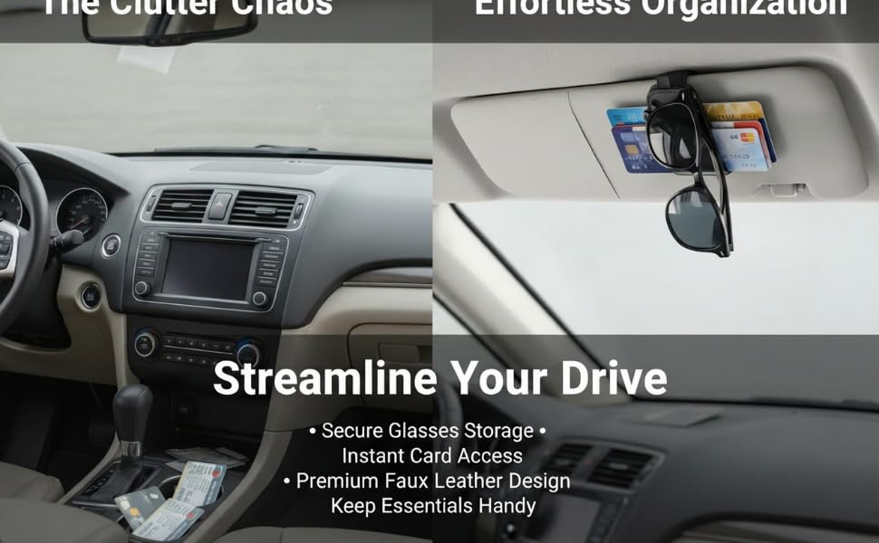 التوافق العالمي تتضمن مجموعتنا حاملي نظارات شمسية للسيارة مصممين ليناسب أي نوع من المركبات تقريبًا. قم بتوصيل الحاملات بسهولة بواقي الشمس الخاص بك للتخزين الفوري.