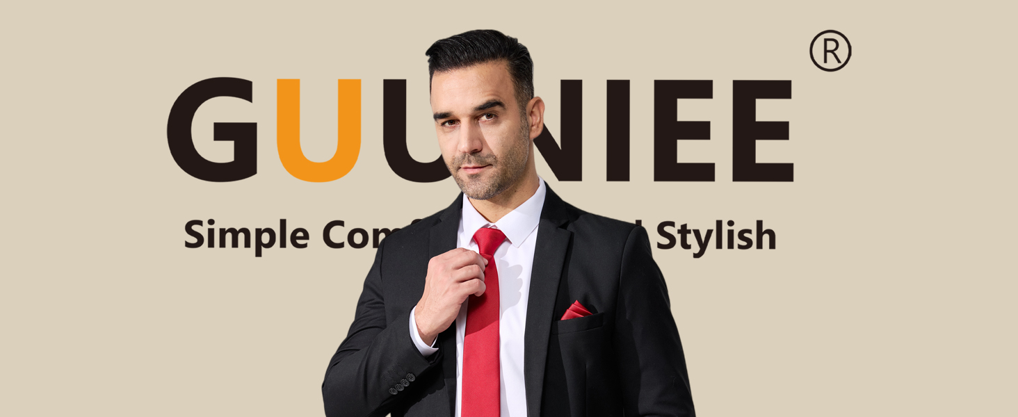 مجموعة ربطة عنق وجيب مربعة للرجال من GUUNIEE في صندوق هدايا - رسمي كلاسيكي لحفلات الزفاف والأعمال التجارية in Kuwait