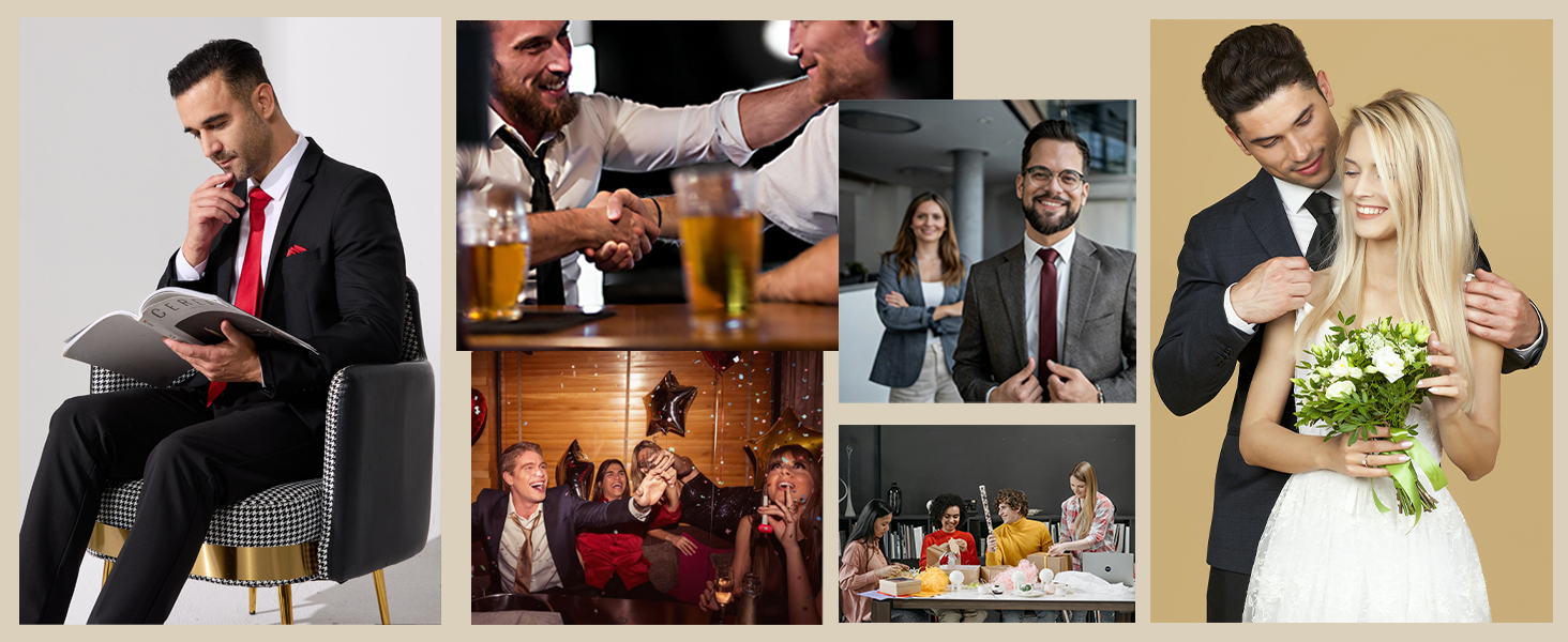• 3. مناسبات رسمية متعددة الاستخدامات: تصميم كلاسيكي بلون موحد متوفر بألوان متعددة يناسب أي بدلة أو بدلة سهرة مثالية لحفلات الزفاف واجتماعات العمل والمناسبات المسائية الرسمية