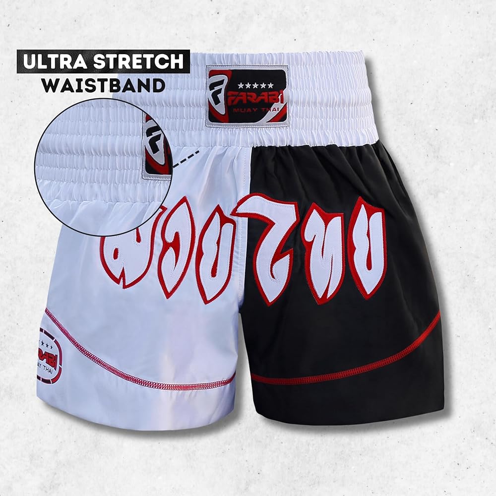 ➥ FARABI SPORTS: شورت الملاكمة حزام خصر مطاطي ونسيج فائق التمدد يمنحك تجربة ارتداء جيدة وسهولة الحركة أثناء المعارك والتدريب.