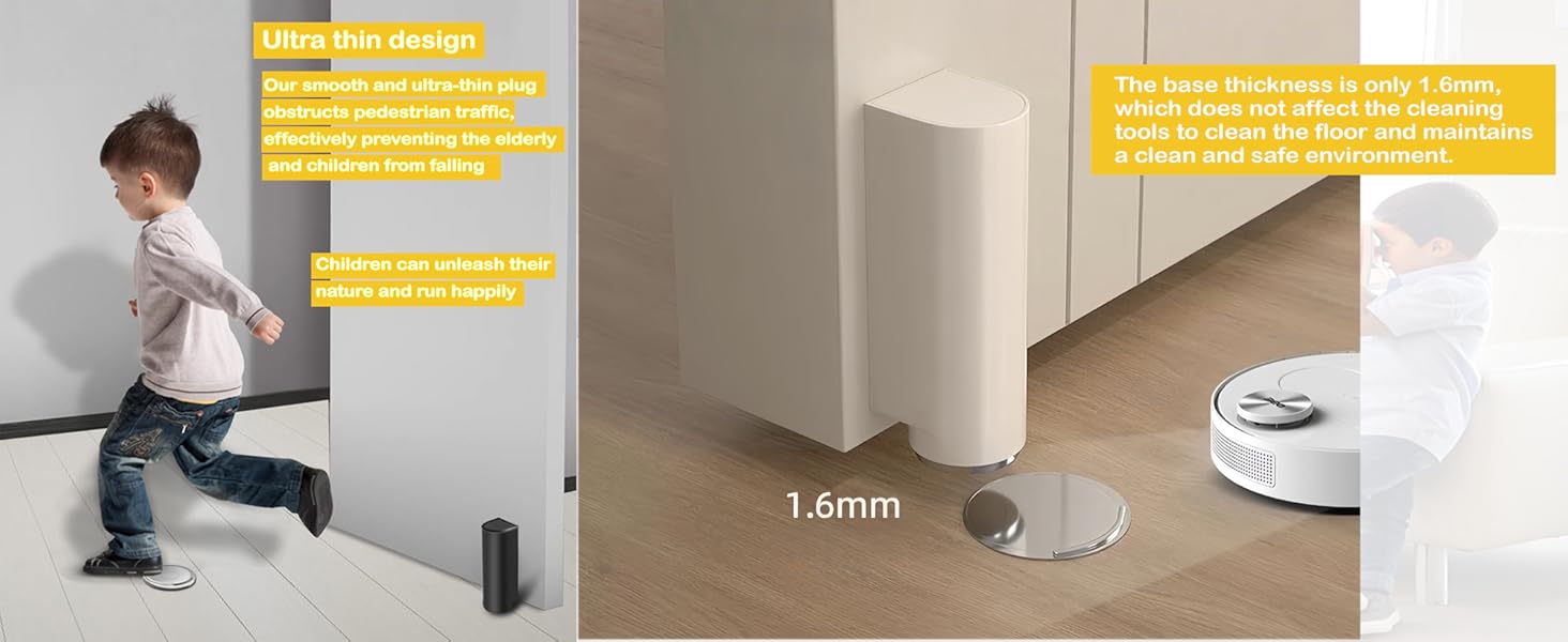 تصميم رفيع للغاية: لا تترك قوابسنا الناعمة والرفيعة للغاية أي زوايا ميتة للتنظيف أو تعيق حركة المشاة، مما يمنع بشكل فعال كبار السن والأطفال من السقوط، ولا يؤثر على أدوات التنظيف لتنظيف الأرضية، والحفاظ على بيئة نظيفة وآمنة. حامل باب مغناطيسي. سدادات أبواب مغناطيسية لأسفل الباب.