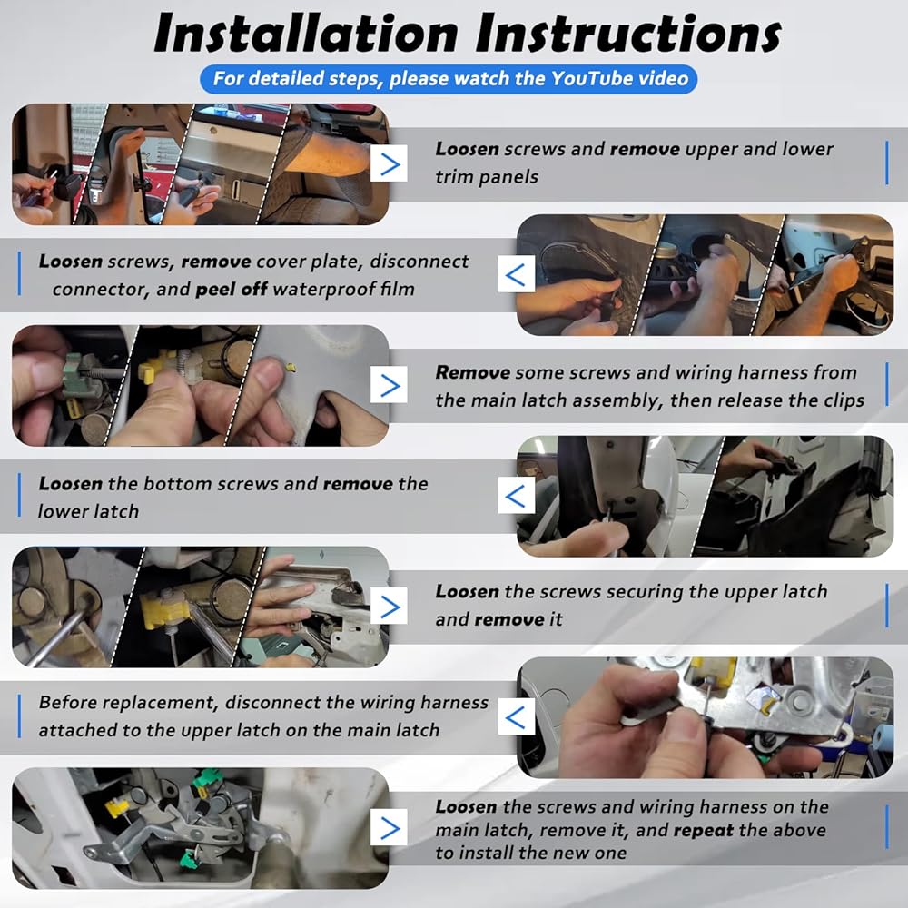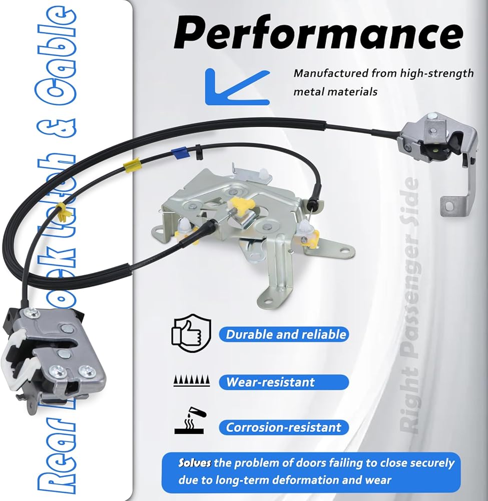 【الوظيفة: قد يتشوه مزلاج الباب الخلفي لجانب السائق الأيسر وكابل السحب أو يتآكل بمرور الوقت مع الاستخدام لفترة طويلة، مما يتسبب في فشل الباب في الإغلاق بشكل آمن ويشكل خطرًا على السلامة. سيؤدي استبدال مجموعة المزلاج وكابل السحب بمجموعة جديدة إلى حل هذه المشكلة