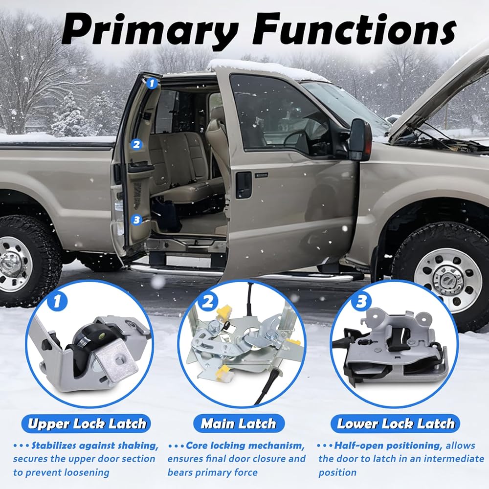 【متوافق】مزلاج وكابل الباب الخلفي للسائق الأيسر متوافق مع 1999-2007 Ford F-250، F-350، F-450، F-550 Super Duty