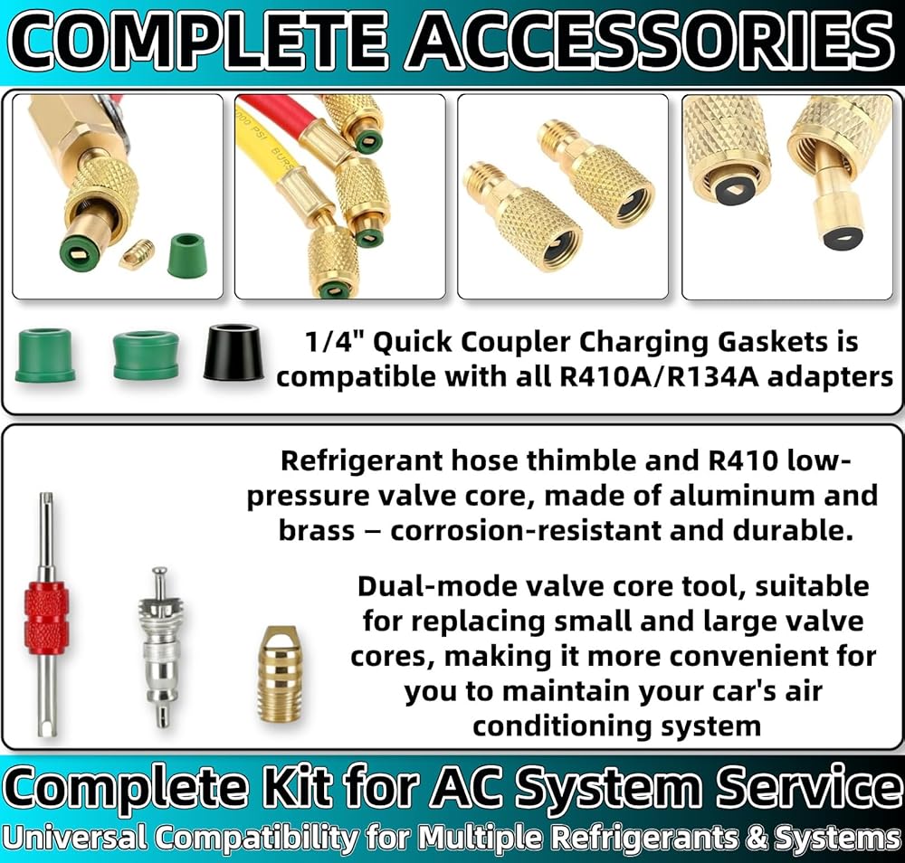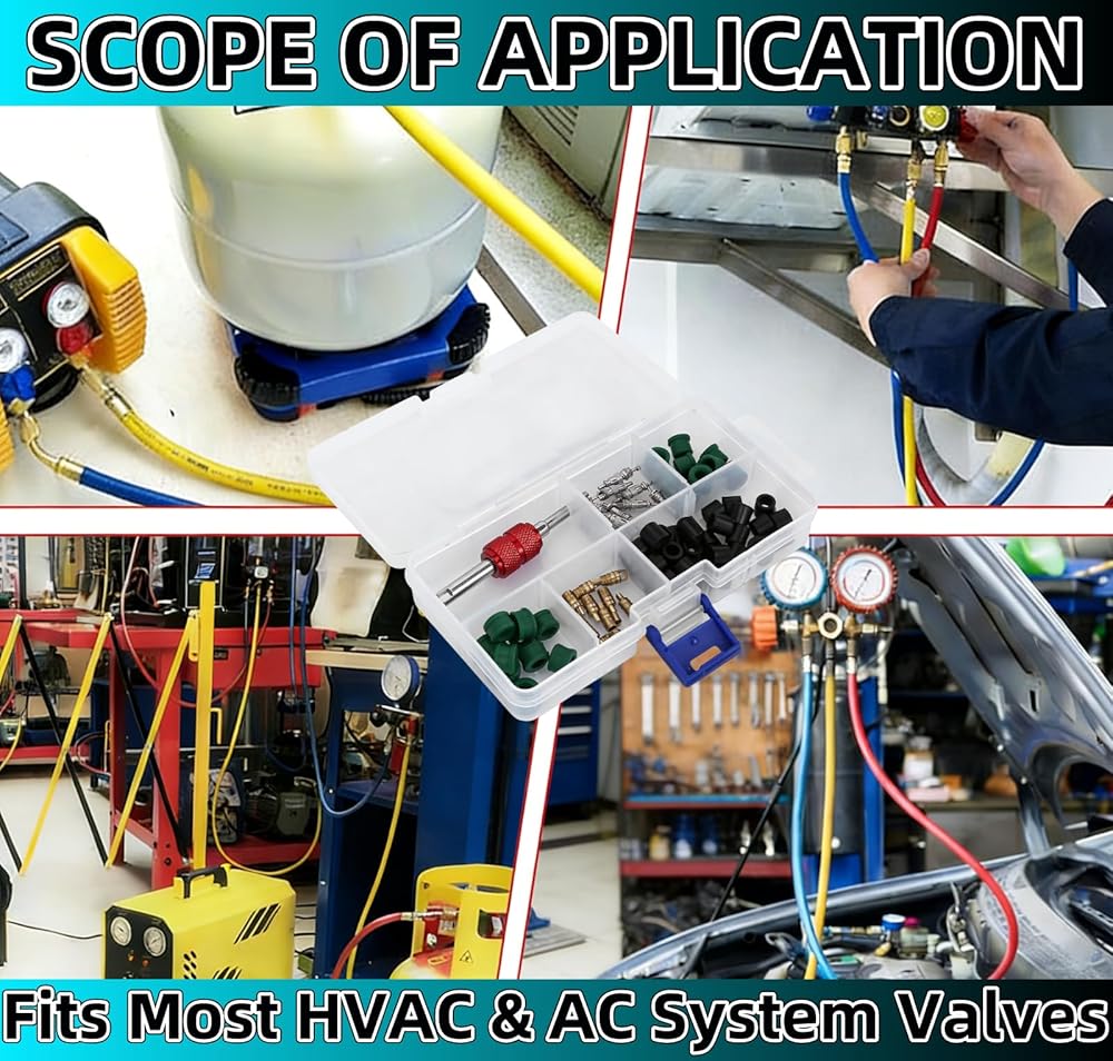 • 【مجموعة كاملة لإصلاح خرطوم الهواء والتهوية وتكييف الهواء مكونة من 71 قطعة】: تتضمن مجموعة إصلاح خرطوم الهواء الشاملة هذه كل شيء للإصلاحات: 1 أداة إزالة صمام التيار المتردد (نمط مزدوج)، 10 نوى جذعية لصمام خرطوم التدفئة والتهوية وتكييف الهواء، 50 حشية خرطوم (20 أخضر + 30 أسود)، و10 صمامات. معبأة في صندوق قوي، هذه المجموعة الكاملة المكونة من 71 قطعة من تشكيلة السترة الصفراء تلبي جميع احتياجات الخدمة العامة.