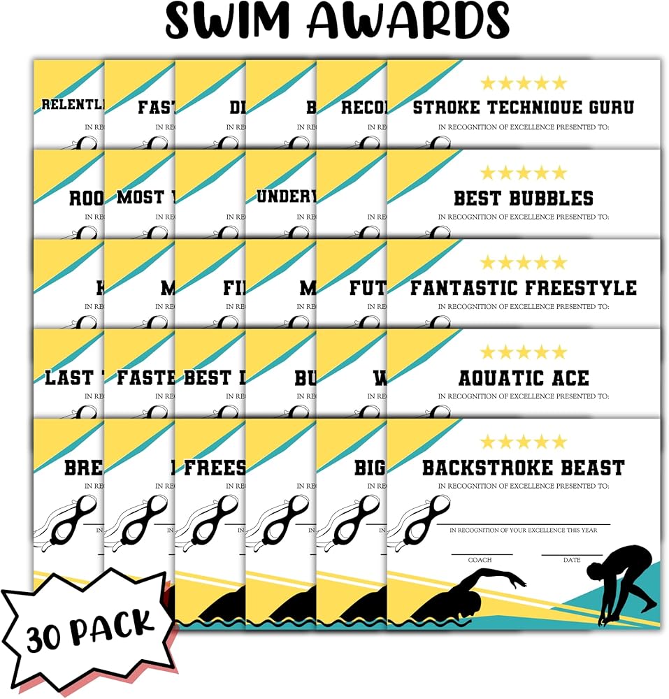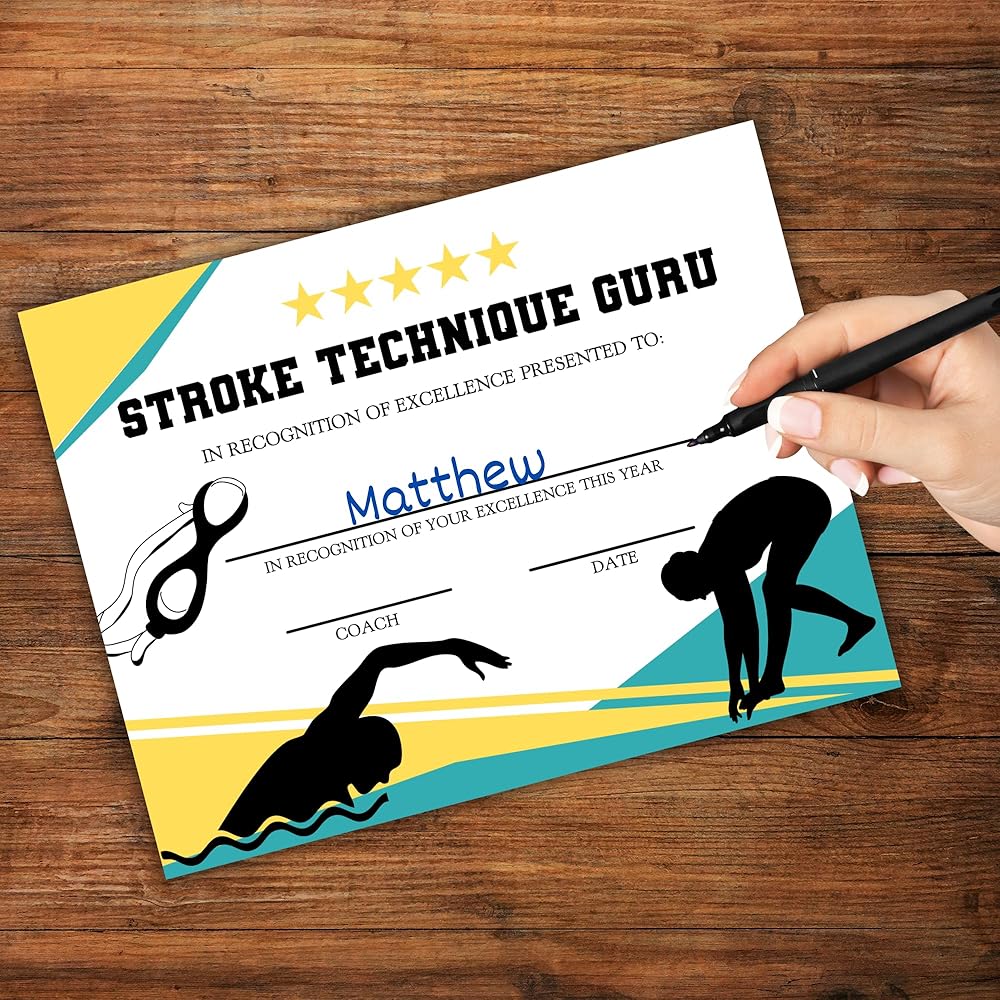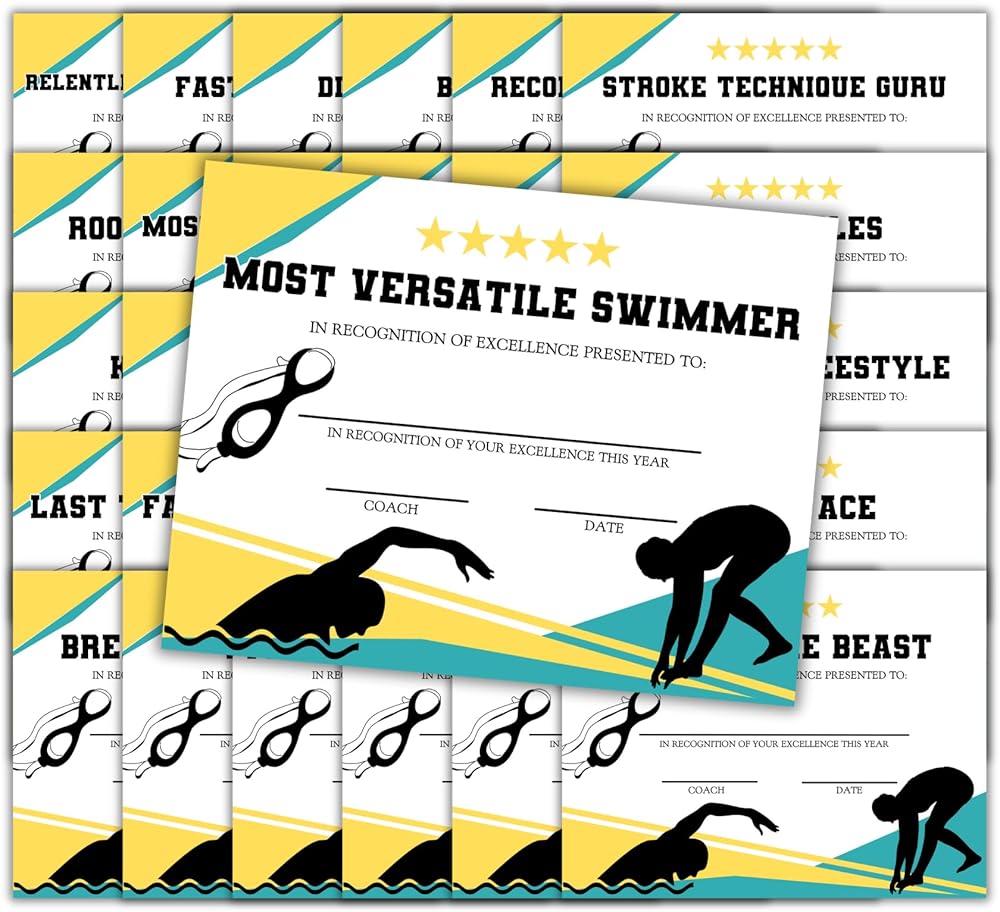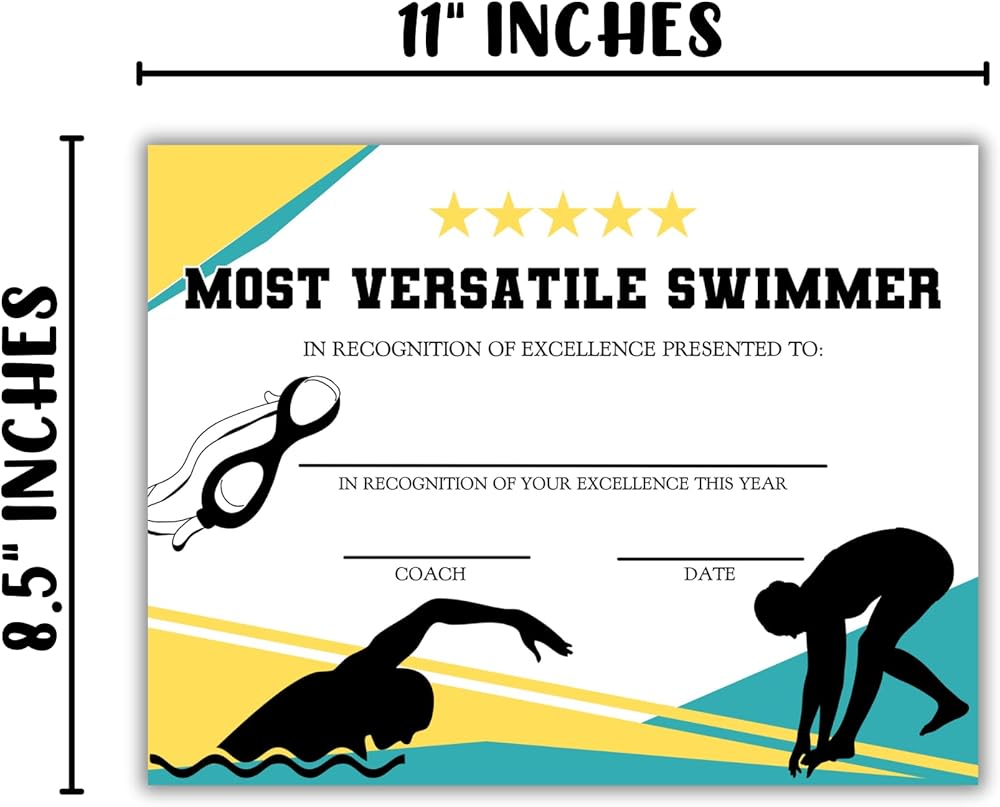 Whether you're handing them out at a swim team banquet, recognizing a student athlete award, or simply celebrating another successful season, these 8.5x11” swimming awards are the perfect addition to your team's traditions. Designed to support your MVPs, rising stars, and dedicated team members, this 30-pack of swim star awards helps make every accomplishment feel seen, valued, and worthy of celebration.