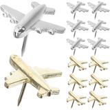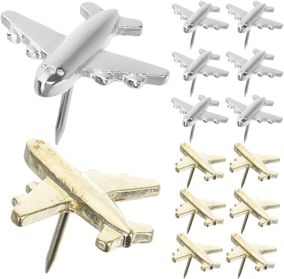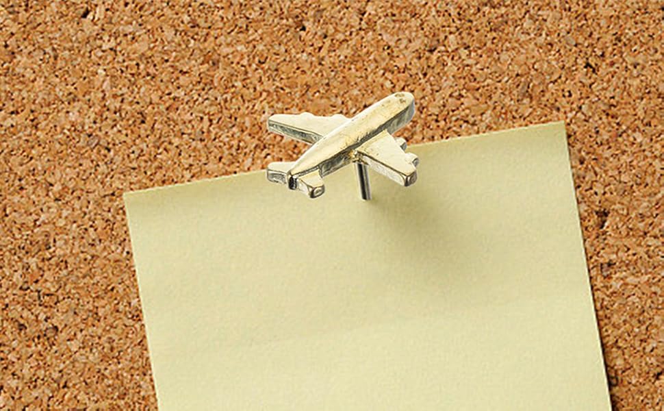 تصميم فريد من نوعه للطائرات: تتميز دبابيس الدفع المعدنية هذه بشكل طائرة مفصل بقياس 0.78 × 0.78 × 0.39 بوصة، مما يجعلها مثالية للاستخدام كدبابيس طائرة أو دبابيس دفع للسفر لتحديد المواقع على الخرائط أو تزيين لوحات الفلين بموضوع السفر.