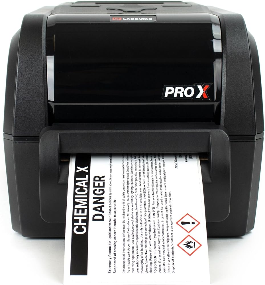 تطبيق إدارة الملصقات المتنوعة - بدءًا من وضع العلامات الثانوية على الحاويات وحتى وضع علامات على الأسطوانات الكيميائية، تدعم هذه الطابعة مجموعة واسعة من تطبيقات GHS. ما عليك سوى اختيار الإمداد المناسب المتوافق مع LabelTac Pro X والبدء في طباعة ملصقات كيميائية متينة ومتوافقة لمنشأتك في وقت قصير.