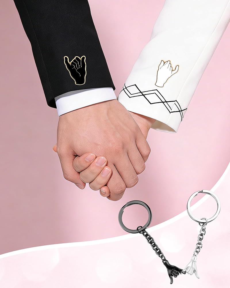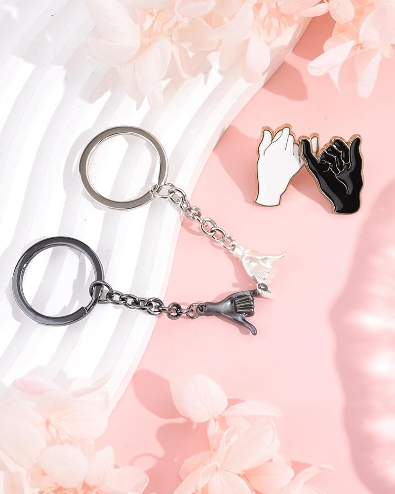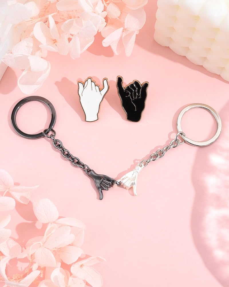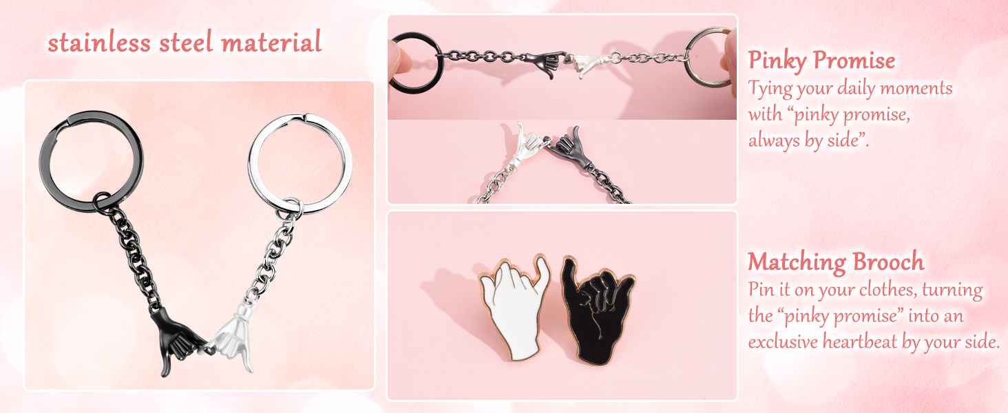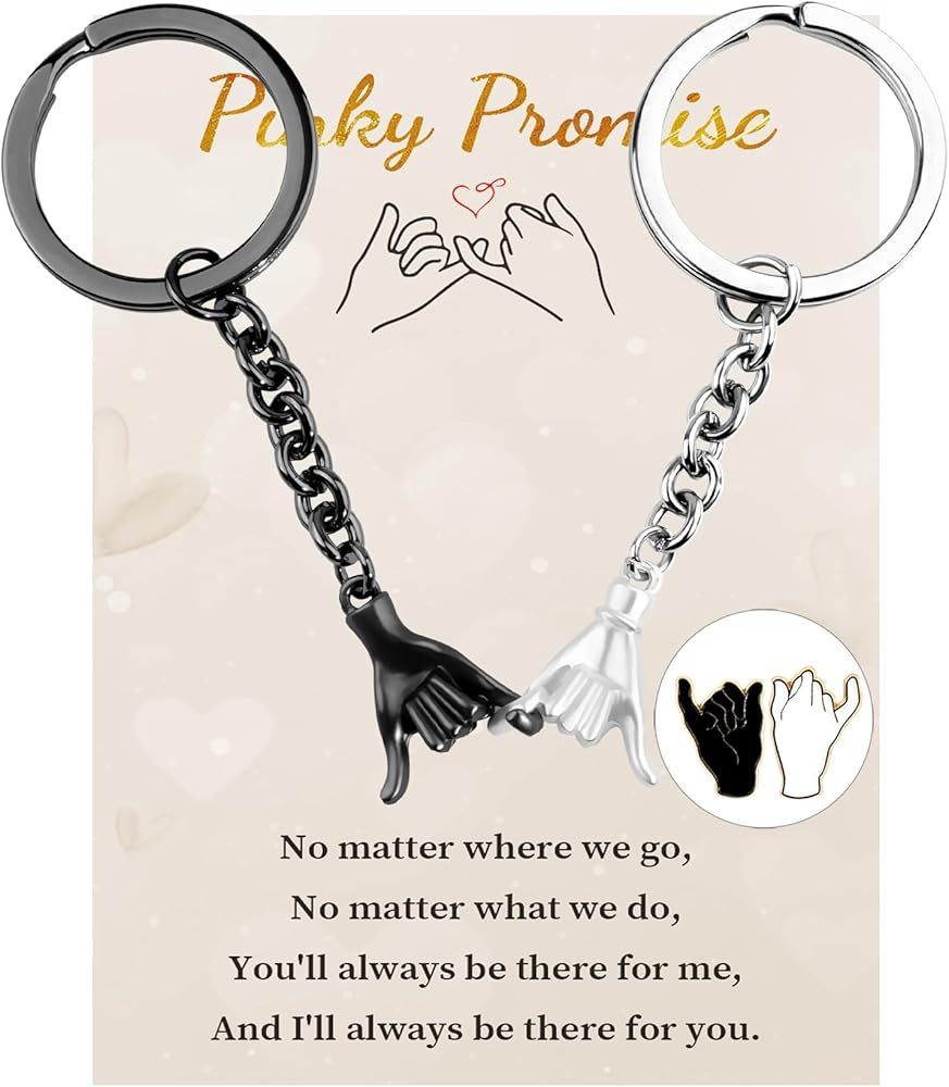 هدايا للأزواج - يحصل كل شريك على سلسلة مفاتيح واحدة + بروش واحد: يتم ربط سلسلة المفاتيح الخاصة بك بسلسلة المفاتيح الخاصة بهم، ويطابق البروش الخاص بهم، ويهمس شكل الوعد الخنصر "إنه وعد دائمًا". هذا هو رمز الحب الحصري الخاص بك، والذي يدمج حنان "البقاء معًا إلى الأبد" في كل التفاصيل اليومية