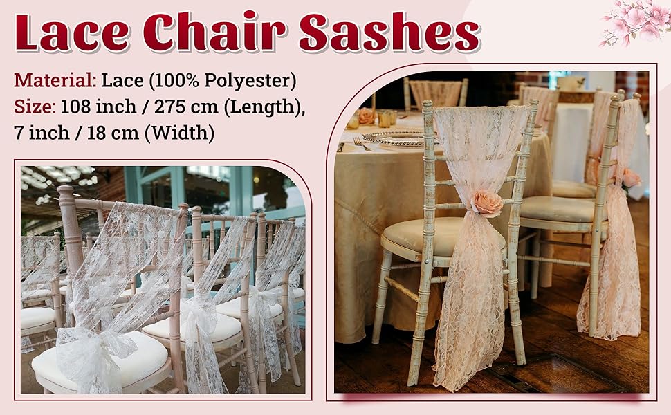 💝 المادة والحجم: أوشحة الكرسي هذه مصنوعة من نسيج دانتيل قوي وقابل للتمدد وعالي الجودة. الحجم 7 بوصة × 108 بوصة. مظهر أنيق، لمسة يد مريحة، المزيد من بروز كراسي الدانتيل عالية الجودة.