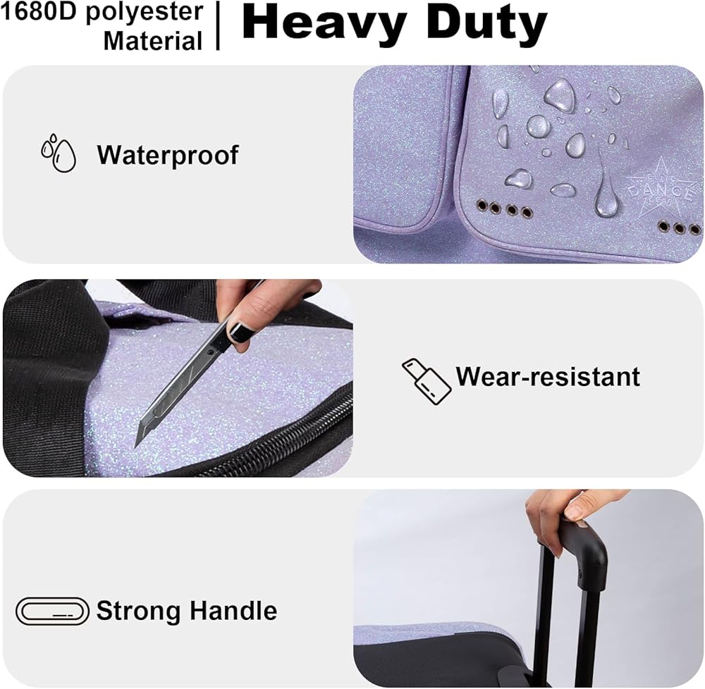 هدية مثالية للراقصين - هدية عملية ولافتة للنظر لأعياد الميلاد أو العطلات أو المسابقات. يوصي معلمو الرقص بشدة بحقيبة الملابس الأرجوانية هذه باعتبارها ضرورية للبقاء منظمة وواثقة وجاهزة للمسرح.