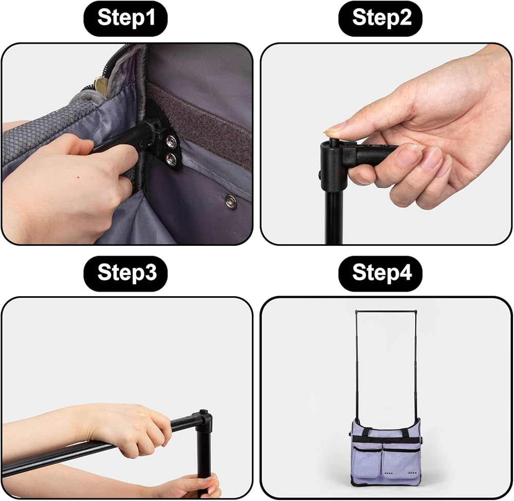 رف الملابس المحمول - أرجواني 23 بوصة - صغير الحجم لكنه واسع، ويمتد حتى طول 4.6 قدم، ويحمل بشكل آمن ما يصل إلى 12 زيًا / 25 رطلاً. مصنوع من أجزاء فولاذية متينة وقضيب تلسكوبي، فهو يحافظ على ثبات الملابس دون انزلاق. يتضمن غطاء ملابس أبيض مجانيًا للفساتين وأزياء الرقص والأحذية والإكسسوارات.