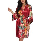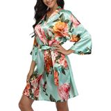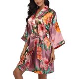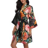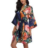 المزايا: تصميم كيمونو مائل على شكل حرف V، طول قصير، أربطة داخلية وحزام خصر للإغلاق، طباعة زهور أنيقة