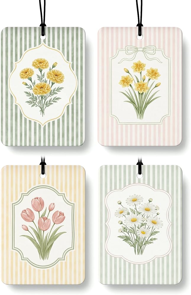ريفي الربيع الأزهار سيارة الهواء المعطر 4 قطع، Cottagecore زهرة الجمالية شنقا معطر الهواء للسيارات خزانة الكتب درج، لطيف اكسسوارات السيارات جرلي للنساء الفتيات
