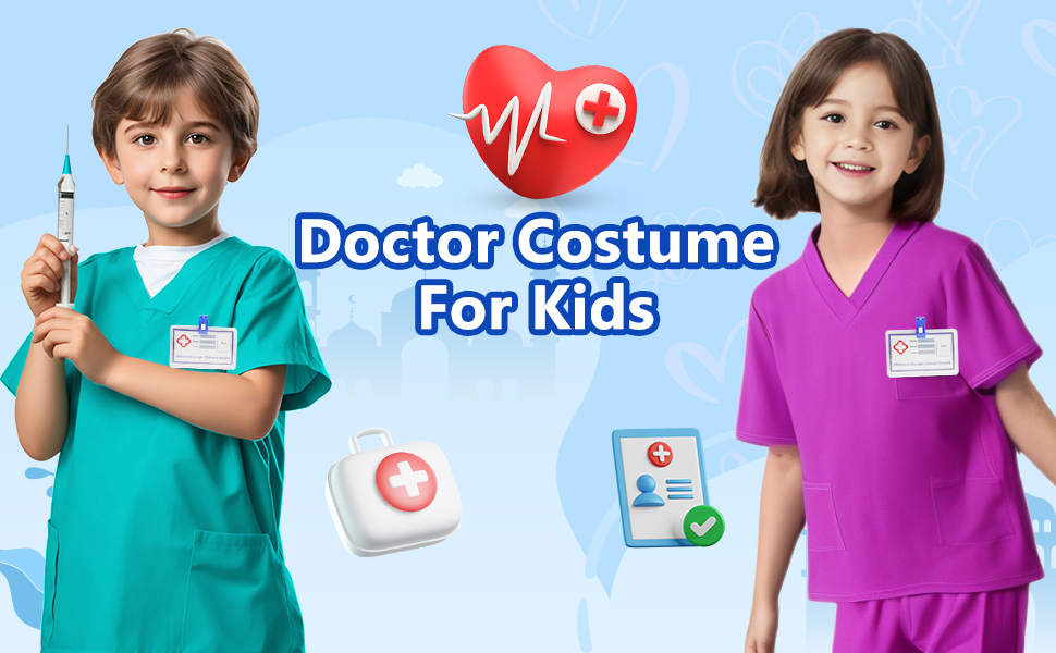 [Learning & Educational Experience]--The Doctor Scrubs Kit is sure to inspire imagination when pretending to play.Imagine them as a doctor, nurses, or veterinarians treating other people or pets.Enhances creative thinking, and helps your child learn more about doctors, role-playing, and social skills to pretend a doctor