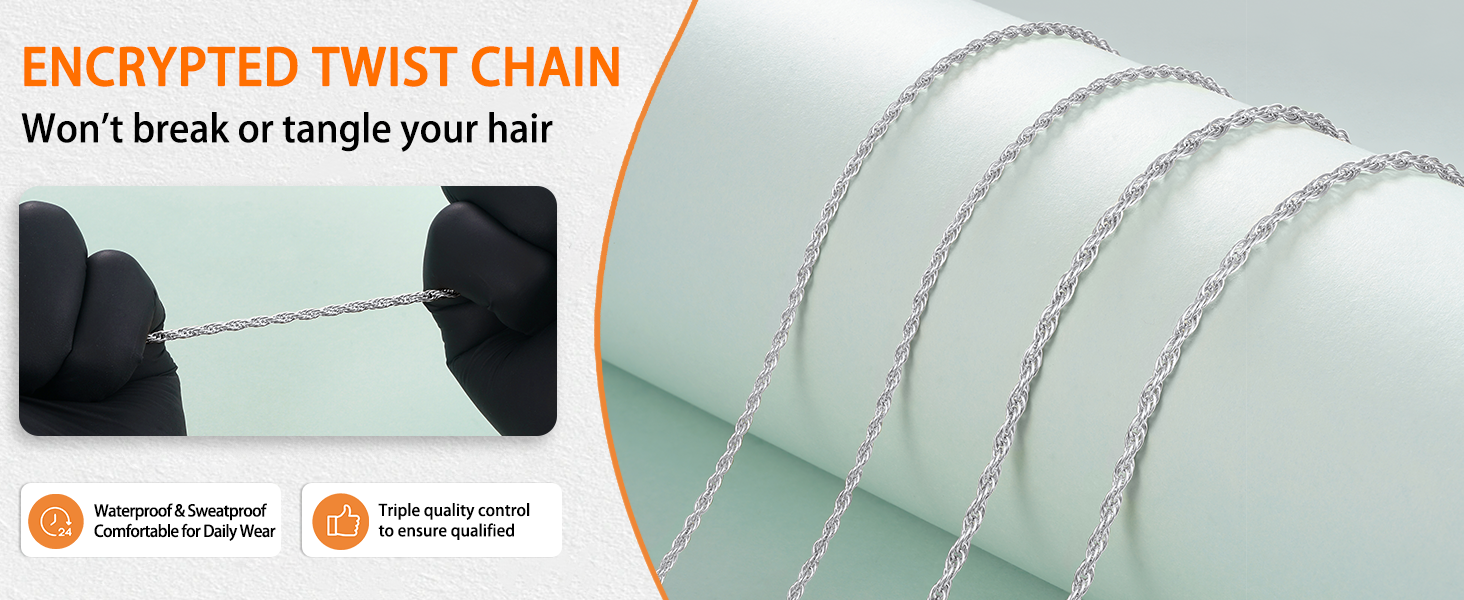 Fashion Vanguard: كانت قلادة سلسلة الحبال هذه دائمًا في طليعة الموضة، ومناسبة للارتداء الصيفي المريح. كما أنه قوي جدًا ولن ينكسر أبدًا. يمكنك ارتداؤها بمفردها، أو إضافة القلادة المفضلة لديك إلى سلسلة القلادة الفضية هذه لإنشاء قلادة سلسلة فريدة من نوعها، مما يعزز نمط أي زي ويضفي طابعًا عصريًا وأنيقًا!