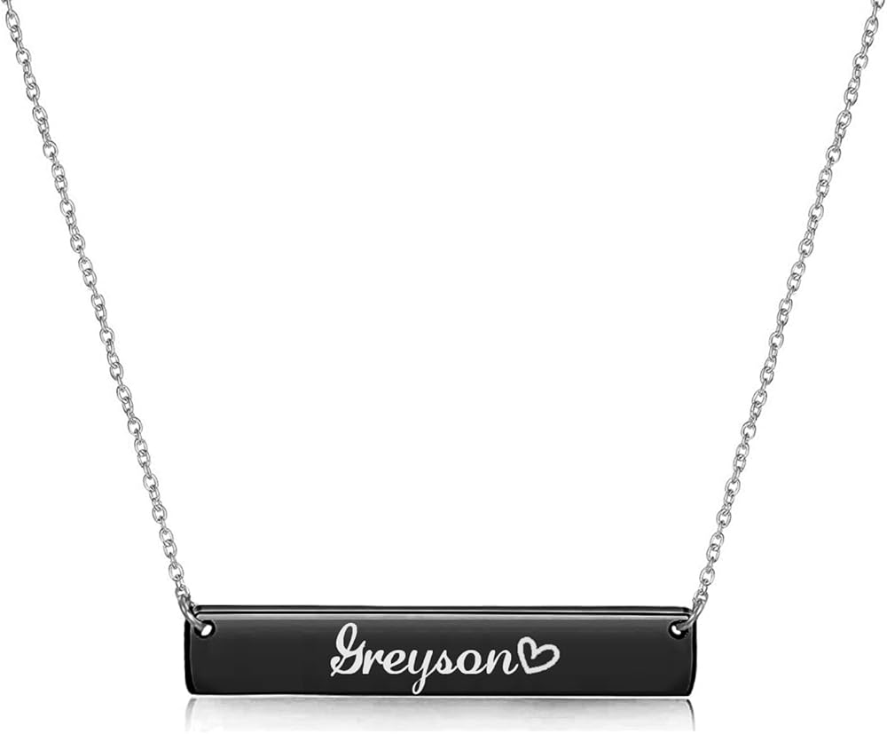Aoloshow مخصص اسم شخصي قلادة أفقية محفورة شريط القلائد أسود اللون الفولاذ المقاوم للصدأ مجوهرات لذيذة للمرأة سلسلة قابلة للتعديل in Kuwait