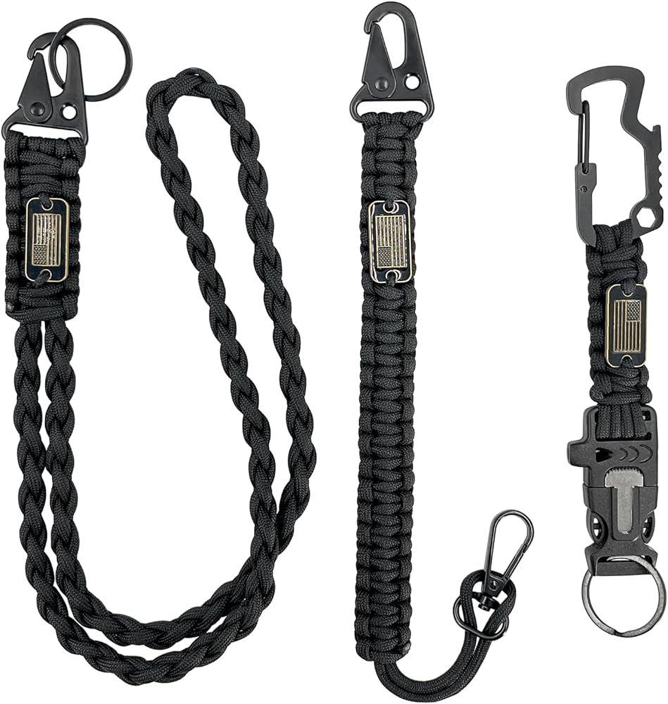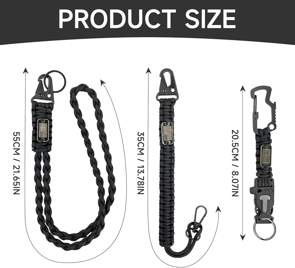 【3-in-1 Practical Set】Includes paracord lanyard x1, paracord keychain x1, and EDC tether x1. Upgraded 3D American flag design