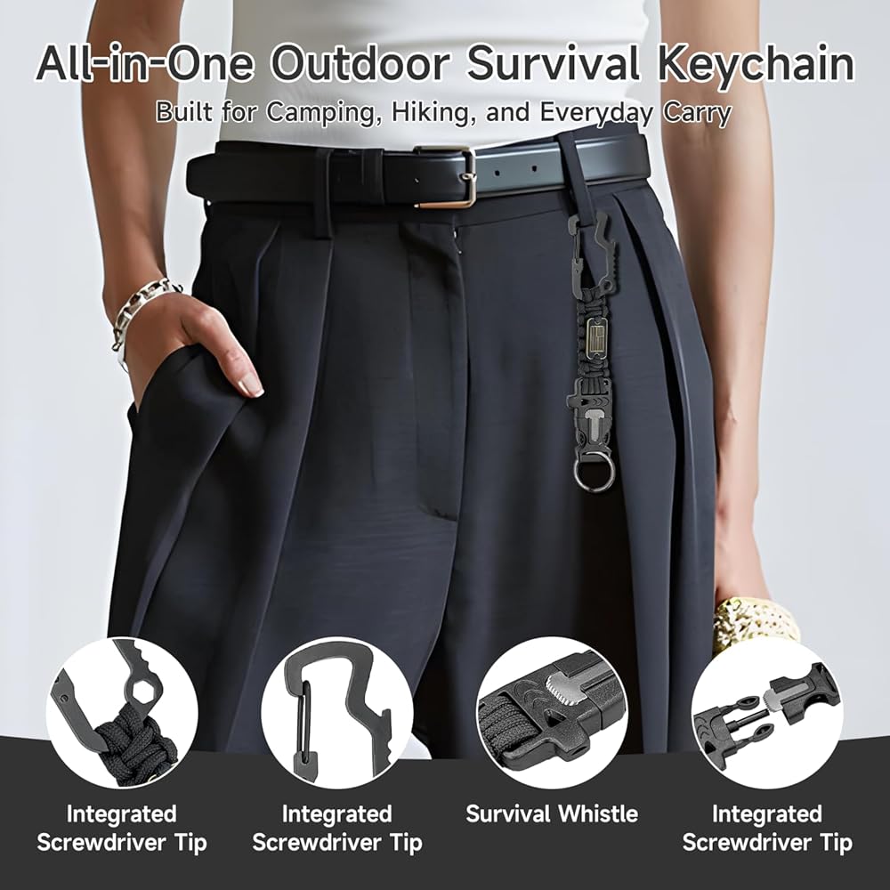 【Multi-Function Paracord Keychain】Approx. 8.5 inches (22 cm) with a hiking buckle, built-in screwdriver, and beer bottle opener—perfect for camping, hiking, and parties.