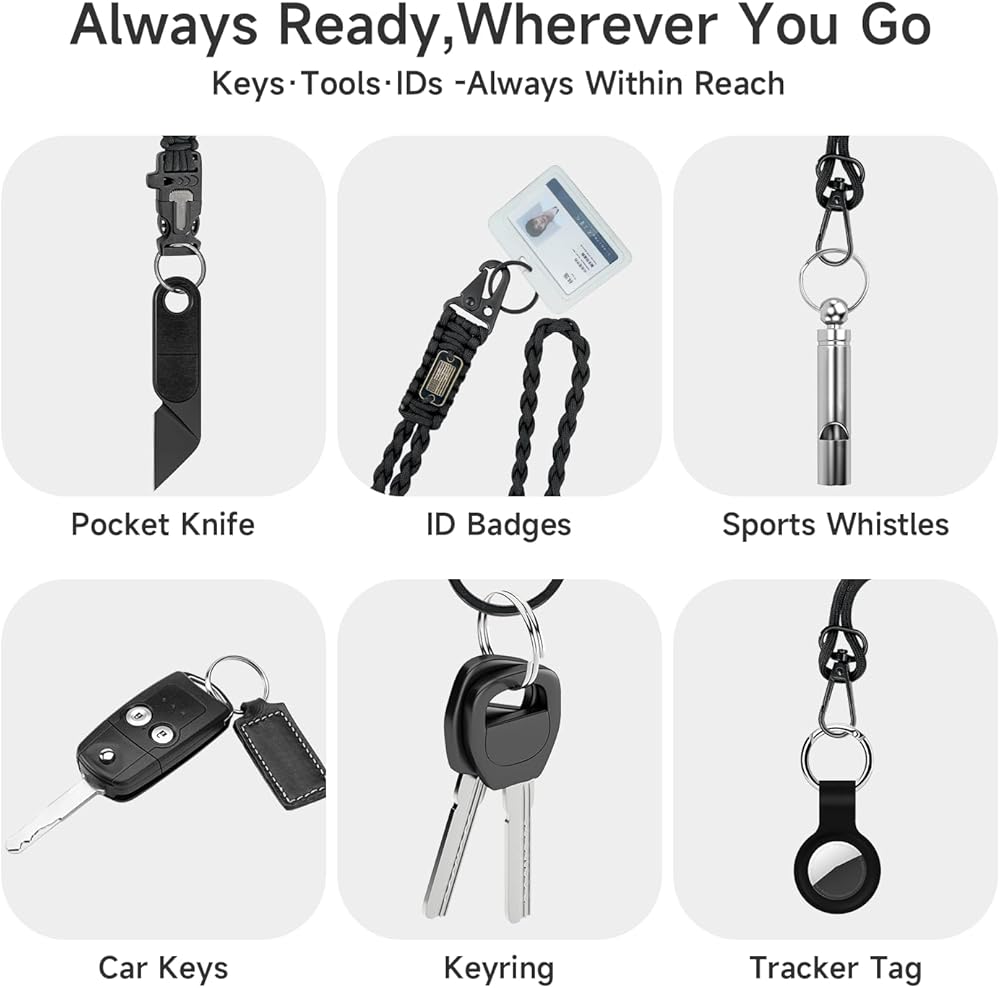 【Versatile Paracord Lanyard】Approx. 20.5 inches (52 cm) long, features upgraded HK clips with two-sized key rings for easy attachment of various items, ideal for daily and outdoor use.