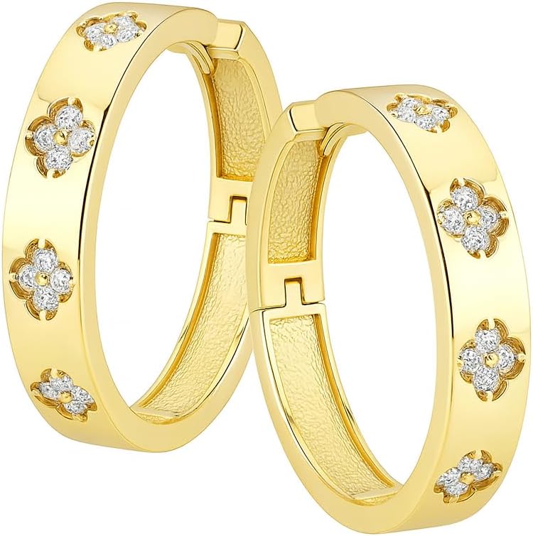 CZ Hoop with Floral Detail – Sparkling cubic zirconia arranged in delicate flowers for a chic touch.