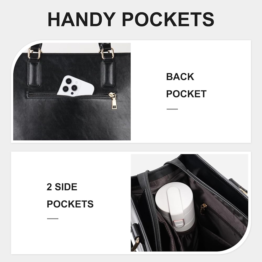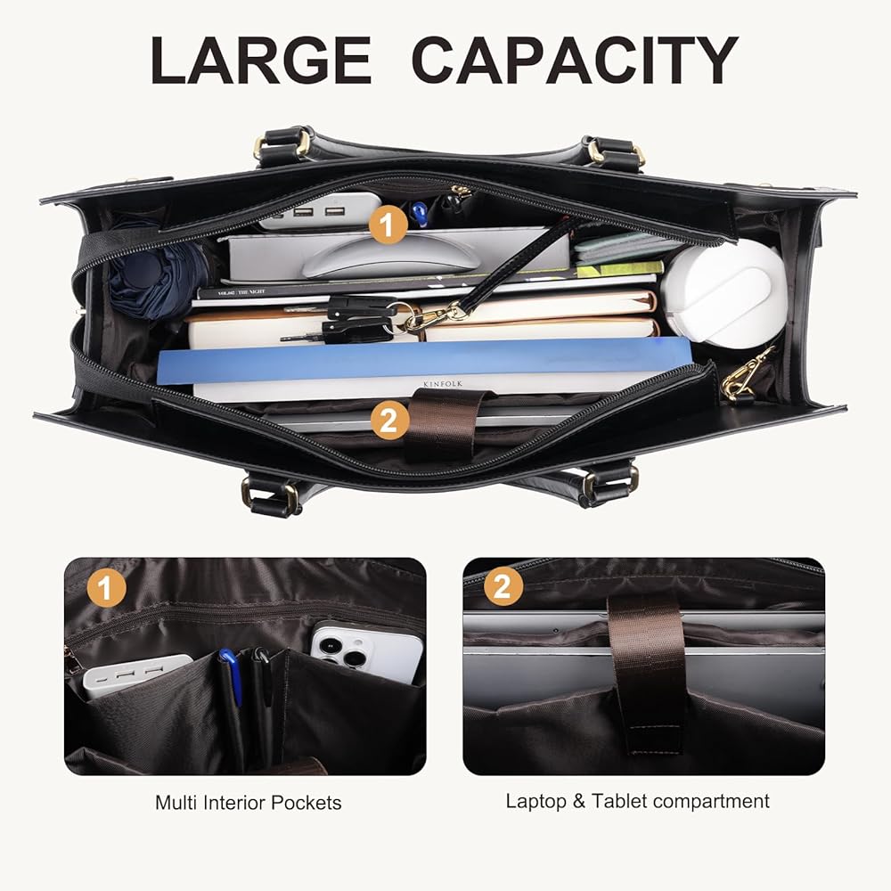 حقيبة كمبيوتر محمول ذات سعة كبيرة ومتعددة التخزين مع حجرة للكمبيوتر المحمول. متوافق مع كمبيوتر محمول 15-16 بوصة. توفر حجرة الكمبيوتر في المنتصف قسمًا سميكًا مبطنًا من الفوم مع شريط إغلاق بخطاف وحلقة لجهاز الكمبيوتر المحمول أو الكمبيوتر اللوحي الخاص بك. تصميم احترافي لحماية الكمبيوتر المحمول الخاص بك من الصدمات والخدوش العرضية. واسعة بما فيه الكفاية مع 3 مساحات تخزين لجميع أغراضك اليومية.
