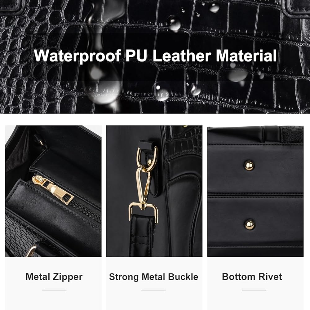 احترافية ومفيدة. مصنوع من مادة جلد البولي يوريثان المقاومة للماء، فاخر وعصري. حزام كتف مبطن قابل للإزالة والتعديل يتراوح من 32.68 إلى 54.53 بوصة كحد أقصى. حزام كتف قابل للإزالة يسمح لك بحملها كحقيبة كروس أو حقيبة كتف أو حقيبة حمل. الجزء السفلي مقوى بـ 4 مسامير لحماية حقيبتك من التلف. تتميز الحقيبة بمساحة تخزين واسعة ومقصورات متعددة، وهي بمثابة منظم للمعلم، أو أساسيات التمريض، أو رفيق العمل، أو حقيبة جاهزة للسفر.