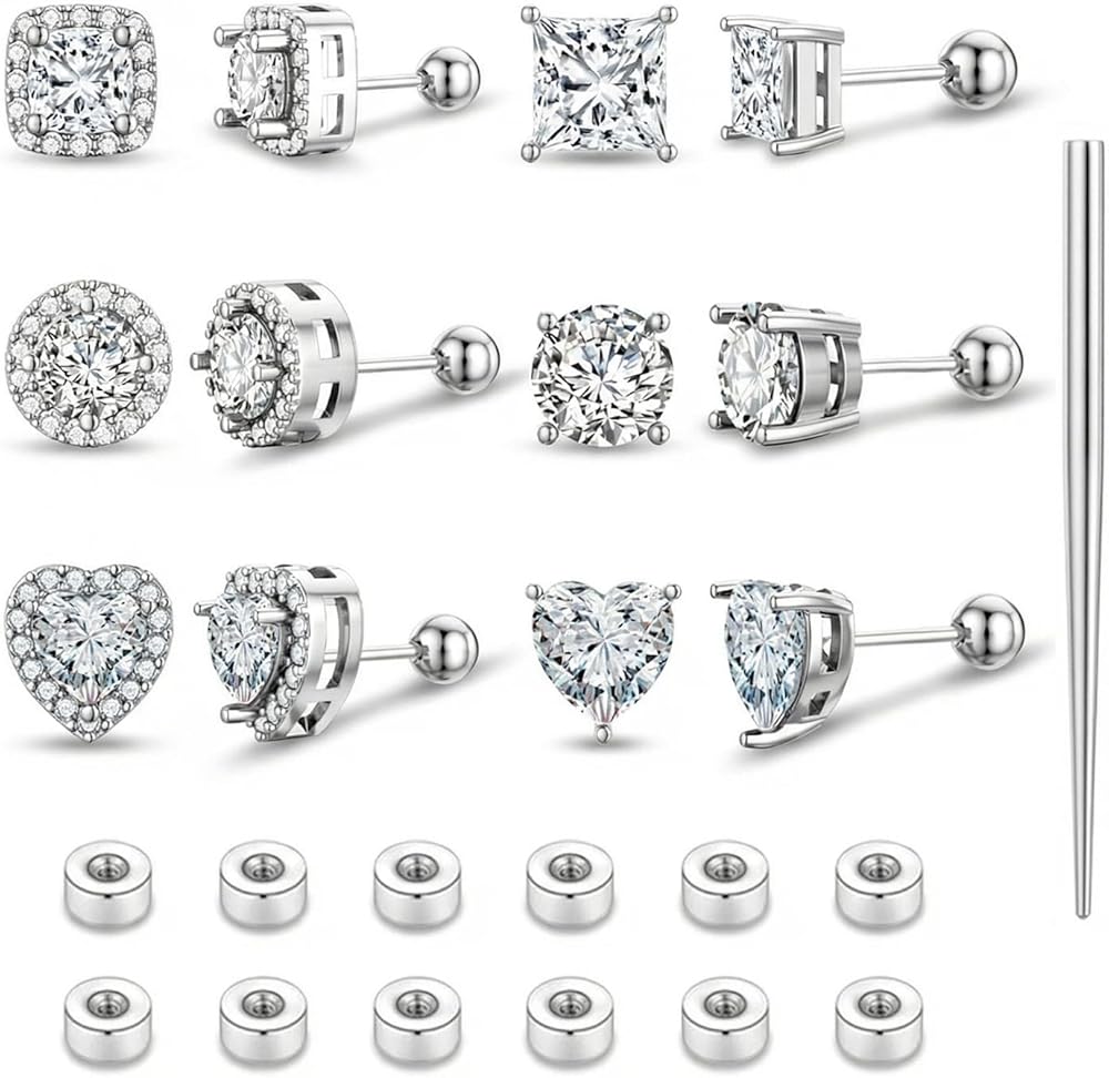 تصميم خلفي آمن: تتميز أزرار CZ الدائرية والمربعة والقلبية بتأثير لامع مبهر، تجمع بين الأنماط العصرية مع لمسة كلاسيكية. تصميم لولبي خلفي يمنع سقوط الأقراط عن طريق الخطأ، مما يوفر الثقة طوال اليوم لأي نشاط.
