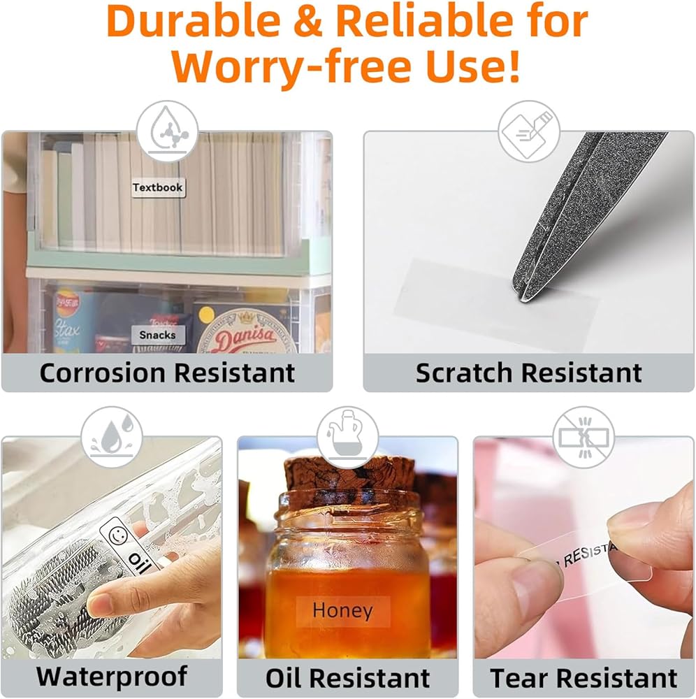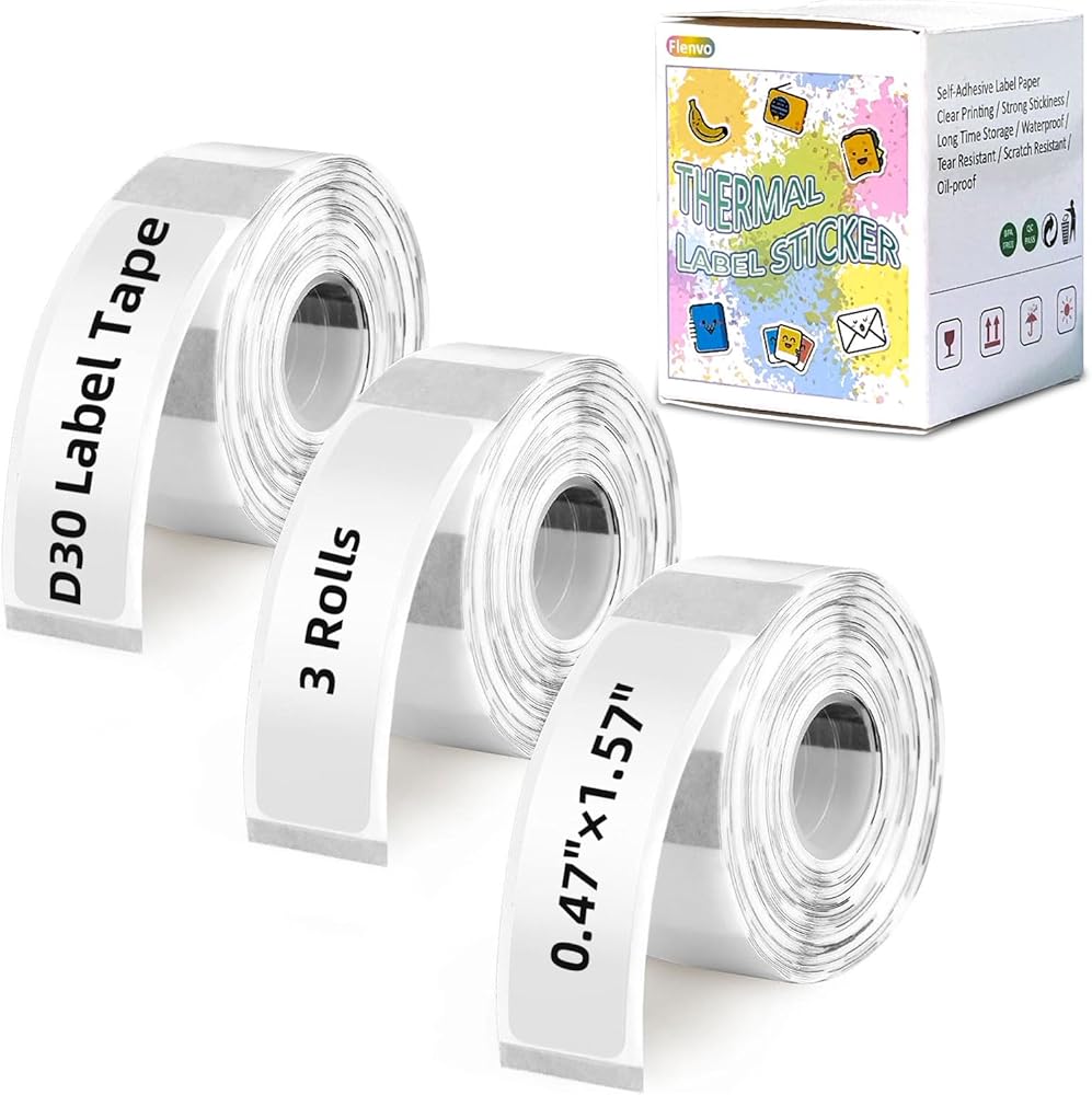FLENVO D30 5-proof synthetic label tape offers unmatched durability and versatility. Waterproof, oil-proof, scratch-resistant, tear-proof, and corrosion-resistant, these clear thermal labels print sharp, ink-free text. Easy to stick and remove without residue, perfect for home, office, or classroom organization. Compatible with D30 and similar label makers. Each pack includes 3 rolls with 160 labels each—organize efficiently and effortlessly.