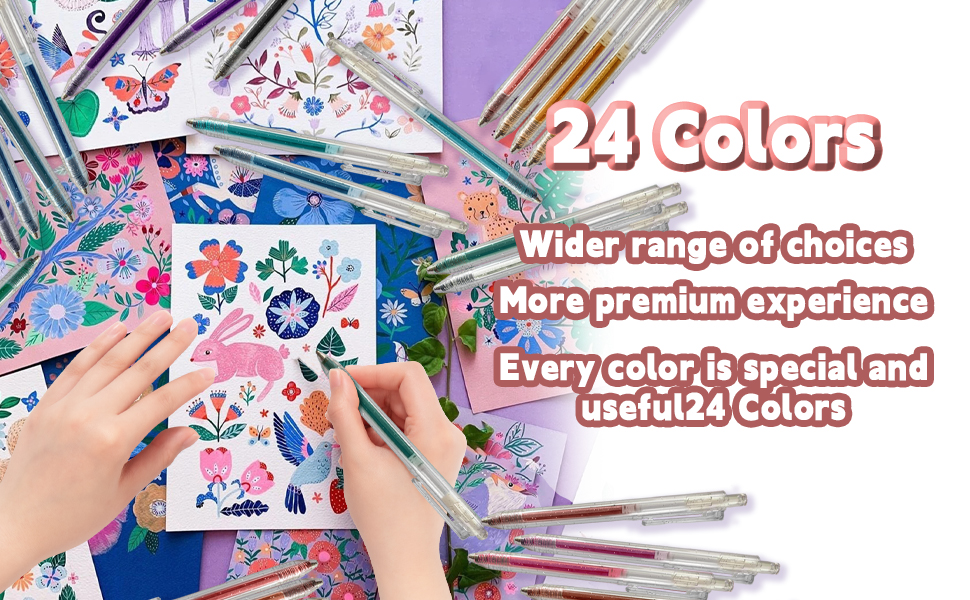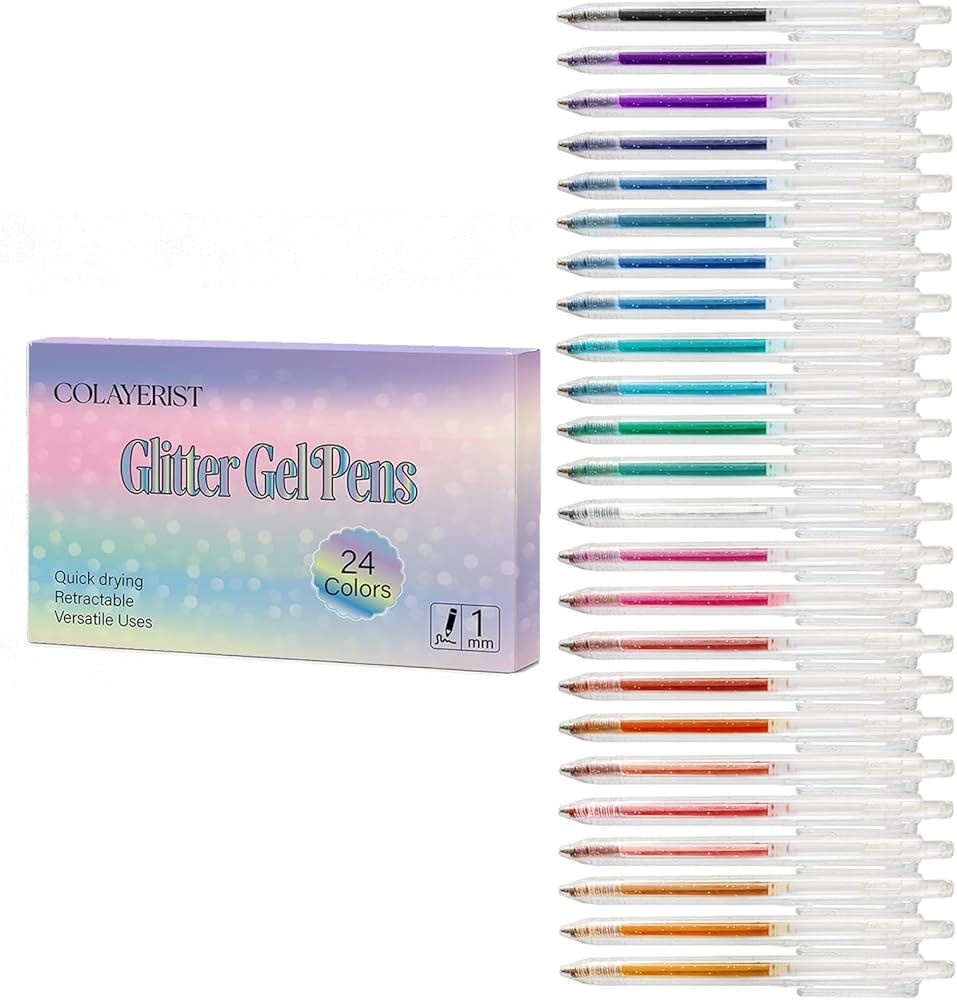 • 【24 لونًا متوهجًا حالمًا لإشعال شرارة إبداعك】 بدءًا من اللون الوردي الحالم الناعم لزهر الكرز إلى الأزرق النيون النابض بالحياة والأرجواني النجمي العميق، ثم إلى الفضة الضبابية الناعمة والبرتقالي النيون - تشمل مجموعة أقلام الجل اللامعة هذه جميع الظلال الرائجة للاستخدام اليومي والمشروعات الإبداعية. كل لون من الألوان اللامعة المشبعة للغاية البالغ عددها 24 لونًا مملوء بجزيئات دقيقة متلألئة تكسر الضوء لتكشف عن توهج مبهر غني الطبقات.