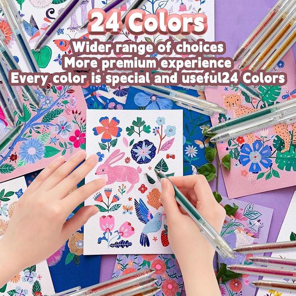 أقلام جل لامعة قابلة للسحب، مجموعة أقلام لامعة مكونة من 24 لونًا للتلوين والكتابة على الجدران والرسم وبطاقات المعايدة اليدوية وإبراز الملاحظات الرئيسية - ناعمة وغير سامة