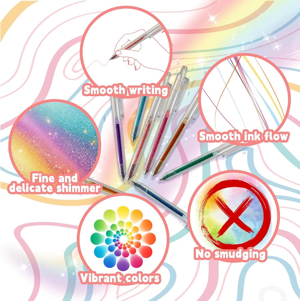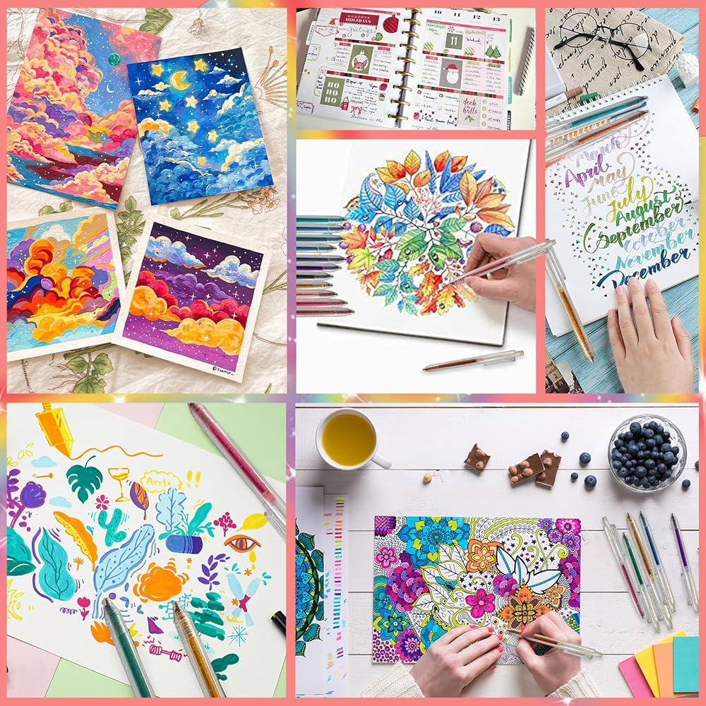 • 【خالية من الأحماض، وغير سامة، وآمنة وخفيفة الوزن】مجموعة أقلام الجل اللامعة هذه مصنوعة من مواد صديقة للبيئة وخالية من الأحماض وغير سامة واجتازت اختبارات سلامة صارمة. عديم الرائحة للاستخدام بدون قلق. يتيح لك الأسطوانة الشفافة مراقبة مستويات الحبر في لمحة. خفيف الوزن ومصمم هندسيًا لتقليل إجهاد اليد أثناء جلسات الكتابة أو الرسم الممتدة - مثالي للطلاب وعشاق التخطيط والعاملين في المكاتب.