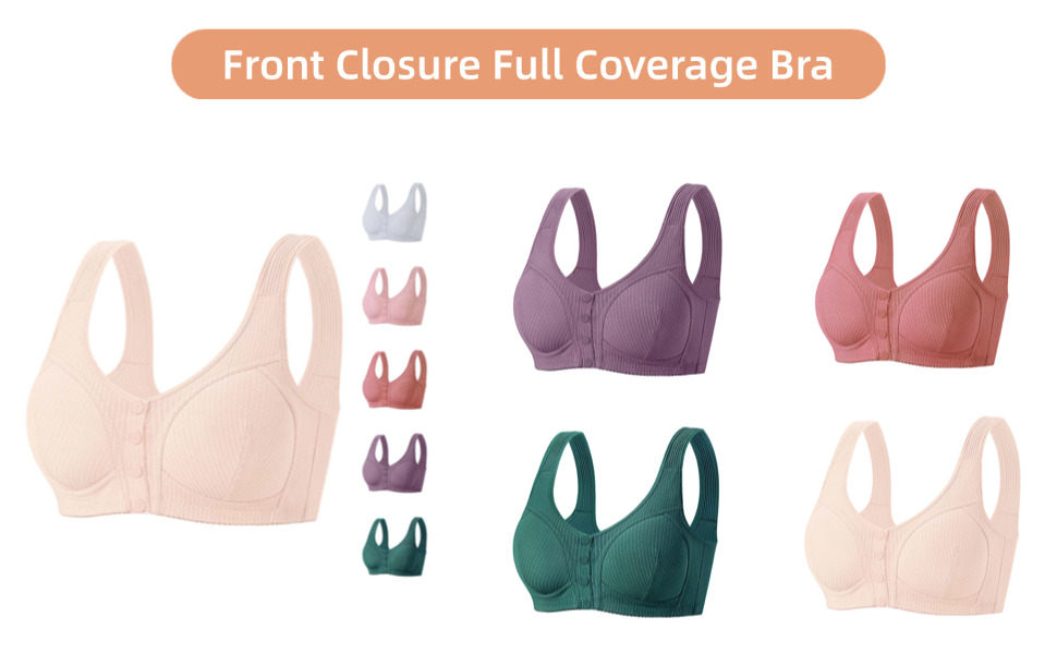 حمالات صدر لاسلكية للنساء الأكبر سنًا، إغلاق أمامي، تغطية كاملة، حمالة صدر للإغلاق، حمالة صدر بدون سلك مع دعم in Kuwait
