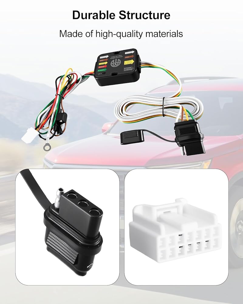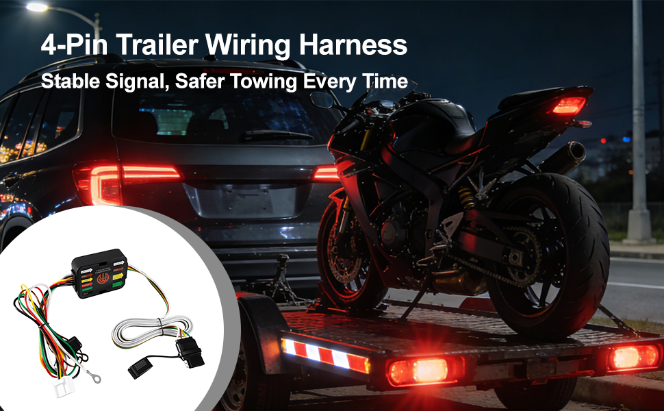 سلامة معززة: يضمن سرج أسلاك المقطورة ذو 4 دبابيس أن أضواء المقطورة وأضواء الفرامل وإشارات الانعطاف تعمل بشكل صحيح في الظروف الجوية السيئة، مما يحسن الرؤية والسلامة
