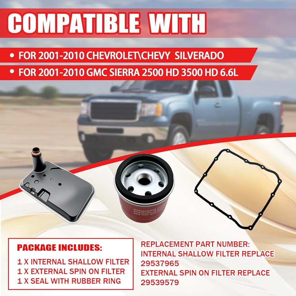 [متوافق مع] طقم فلتر ناقل الحركة هذا مناسب لسيارة Chevy شيفروليه سيلفرادو 2001 2002 2003 2004 2005 2006 2007 2008 2009 2010، مناسب لسيارة GMC Sierra 2500 HD 3500 HD 6.6L 2001 2002 2003 2004 2005 2006 2007 2008 2009 2010