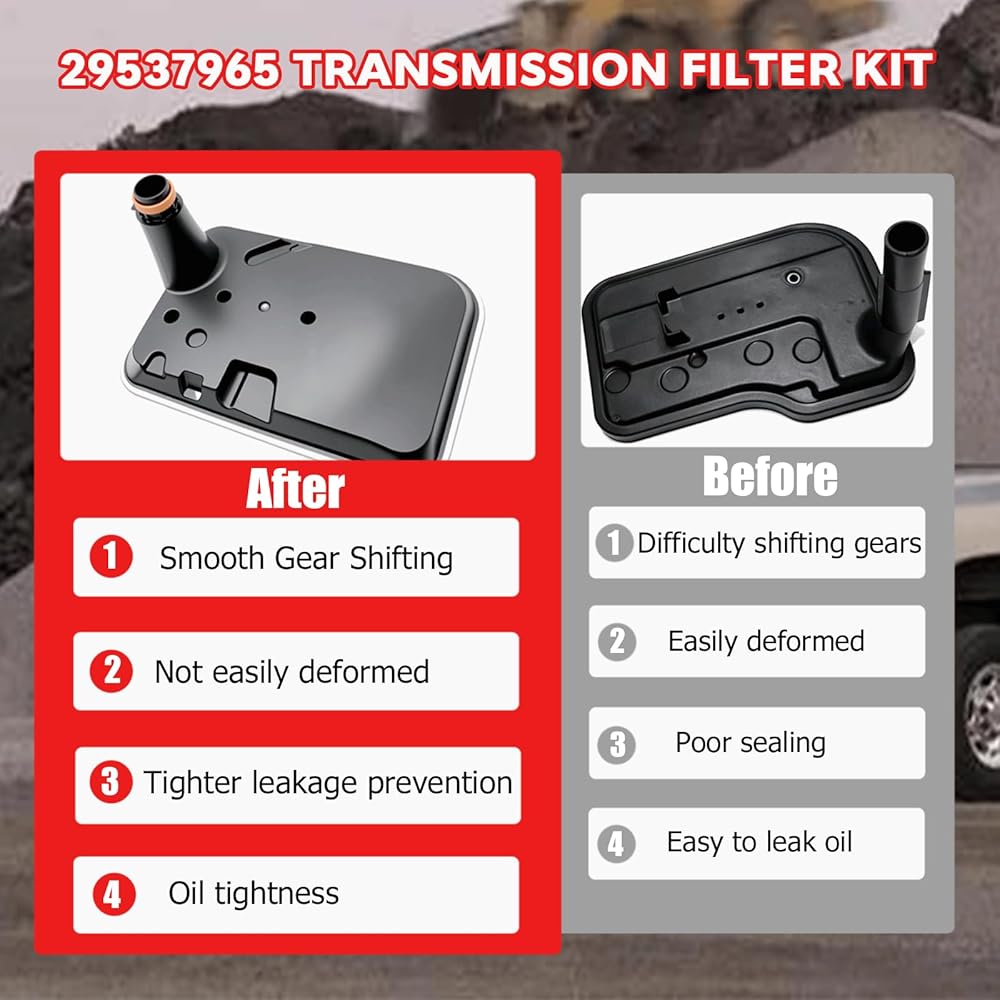 [أداء موثوق] مجموعة فلتر ناقل الحركة 29537965 متوافقة مع أنظمة نقل الضغط العالي، والتي يمكن أن تعزز تدفق السوائل، وتقلل من تكاليف الصيانة، وتضمن نقل التروس بشكل أكثر سلاسة أثناء الاستخدام طويل الأمد.