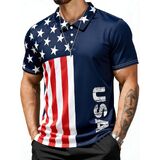 POLO STYLE: Classic polo shirt design with a collared neck and button placket, combining traditional styling with modern patriotic graphics for a sporty yet refined look