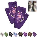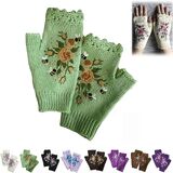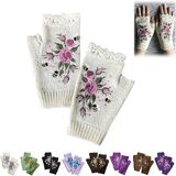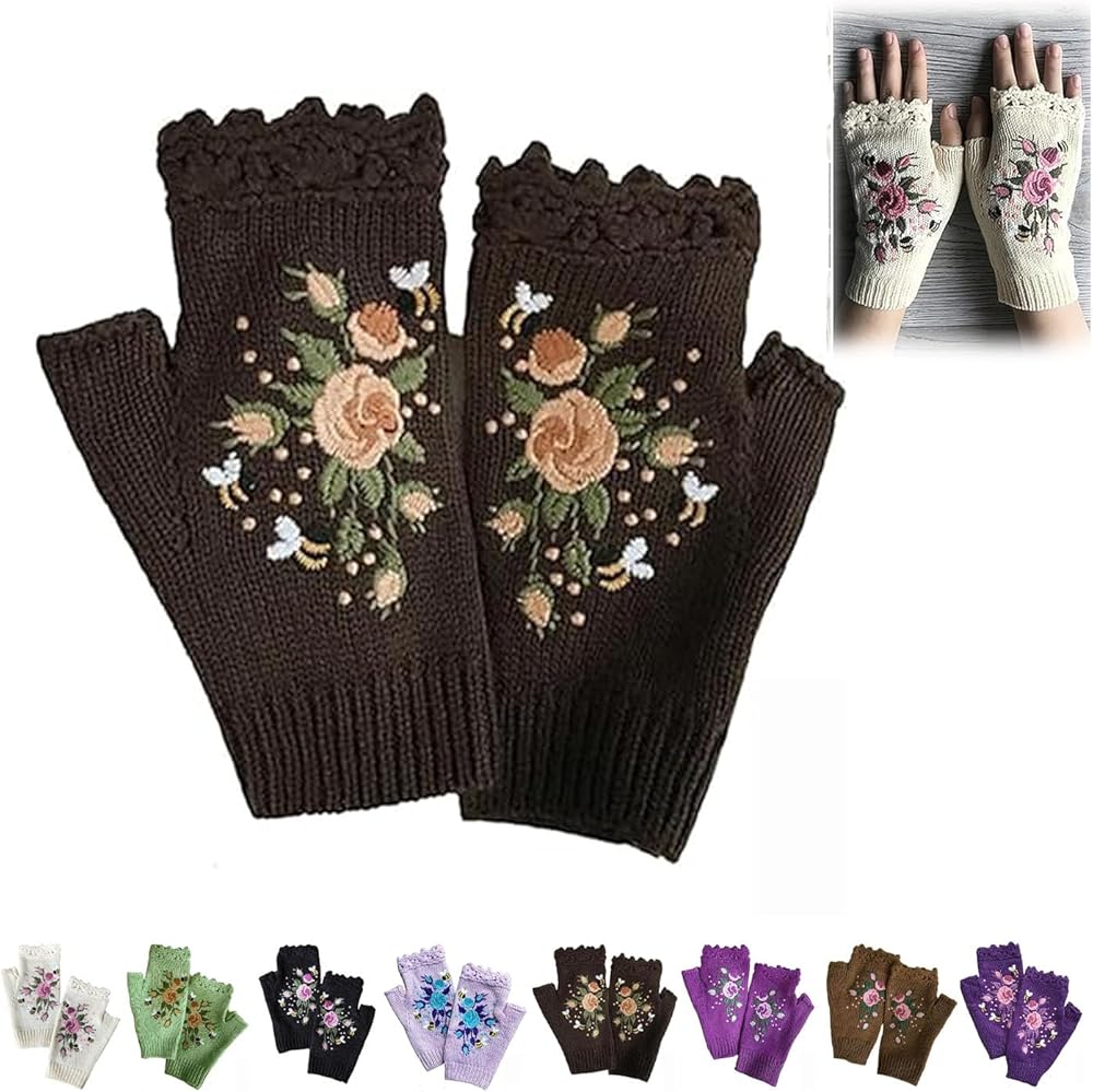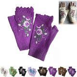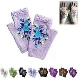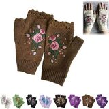 Hand Embroidered Gloves, 2023 New Women's Knitted Gloves Flower Gloves, Winter Handmade Embroidery Knit Fingerless Gloves