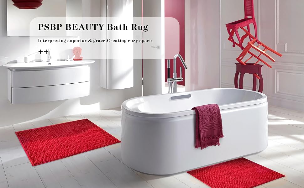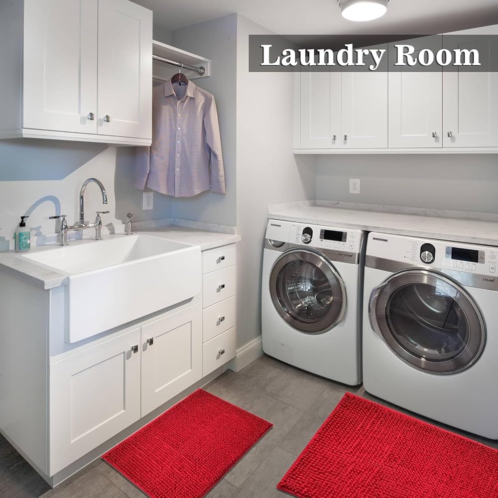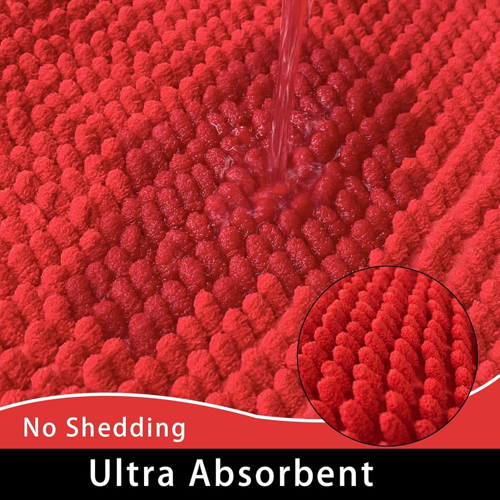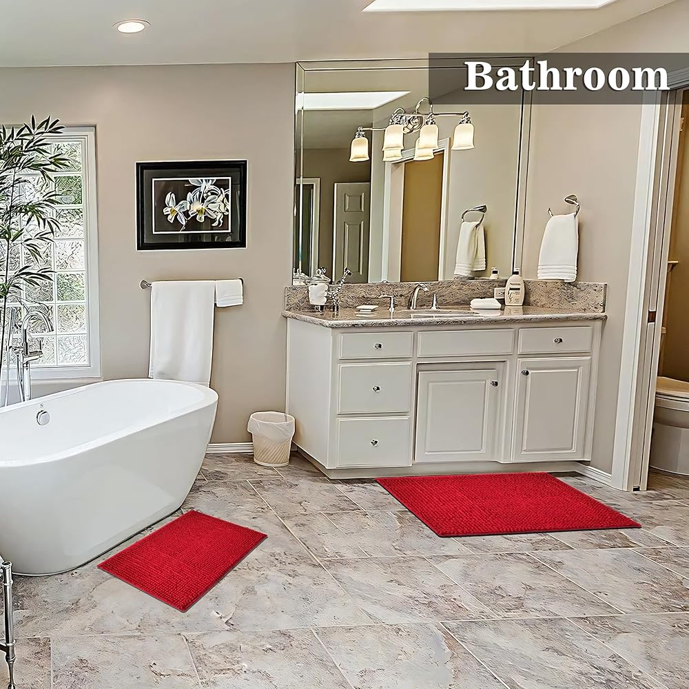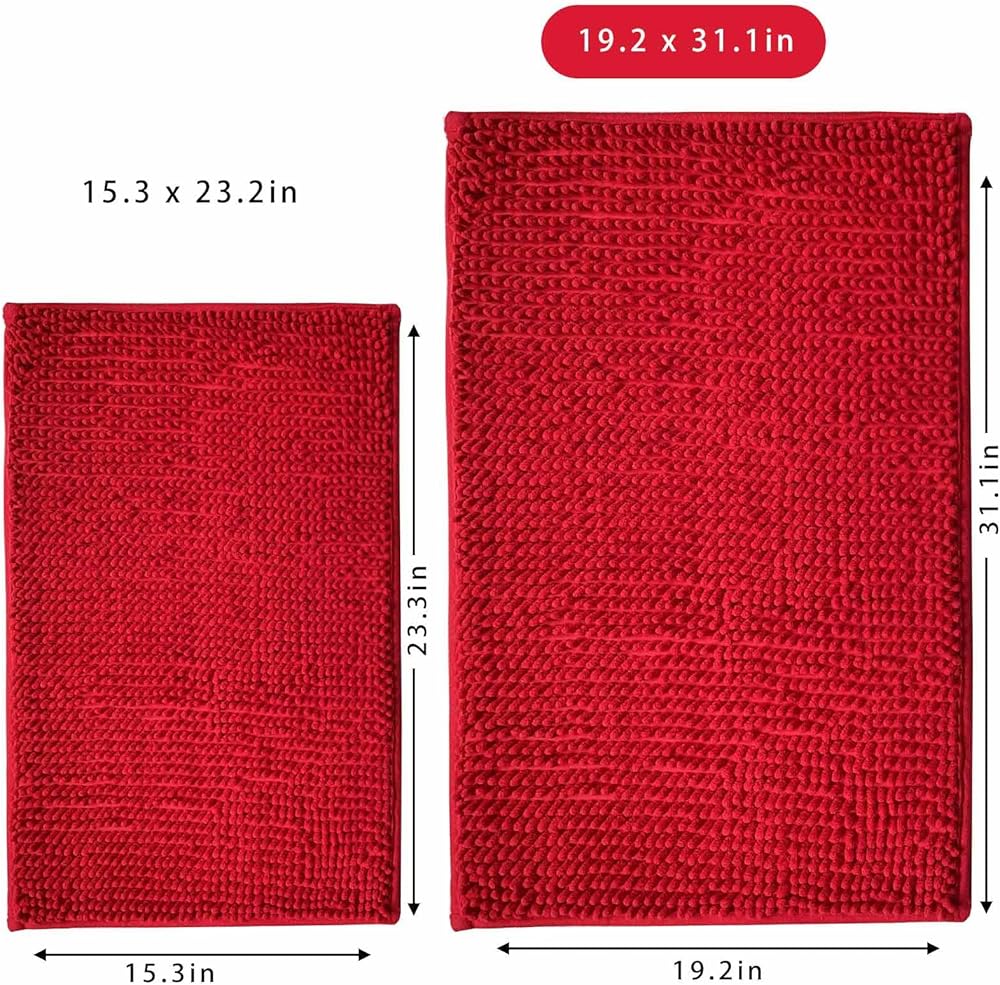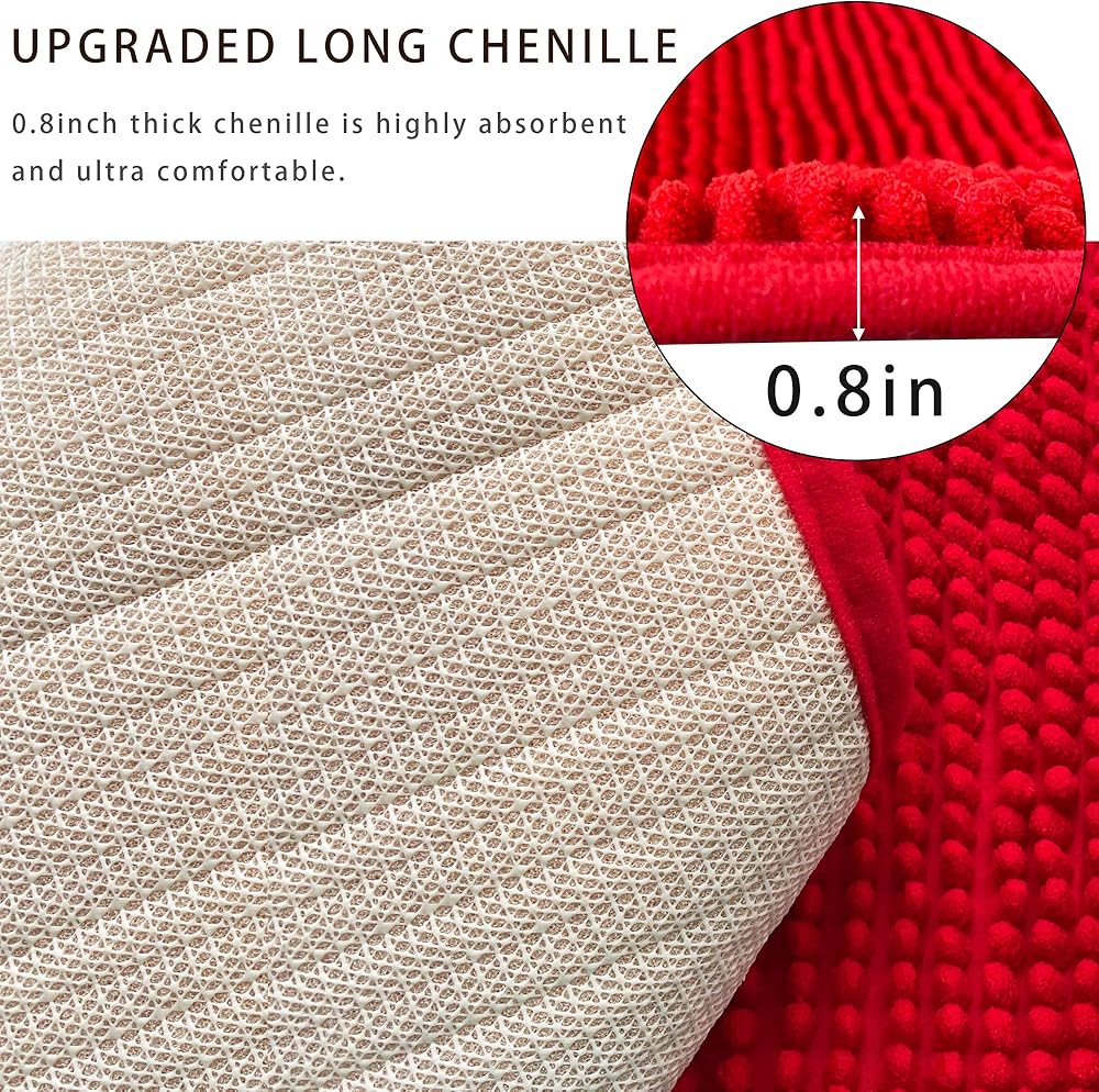 بساط حمام من Eanpet Chenille مصنوع من الألياف الدقيقة، سجادة حمام للأطفال، سجادة حمام قابلة للغسل وجافة وسريعة الامتصاص للماء (19.2 بوصة × 31.1 بوصة و15.3 بوصة × 23.2 بوصة، أحمر)