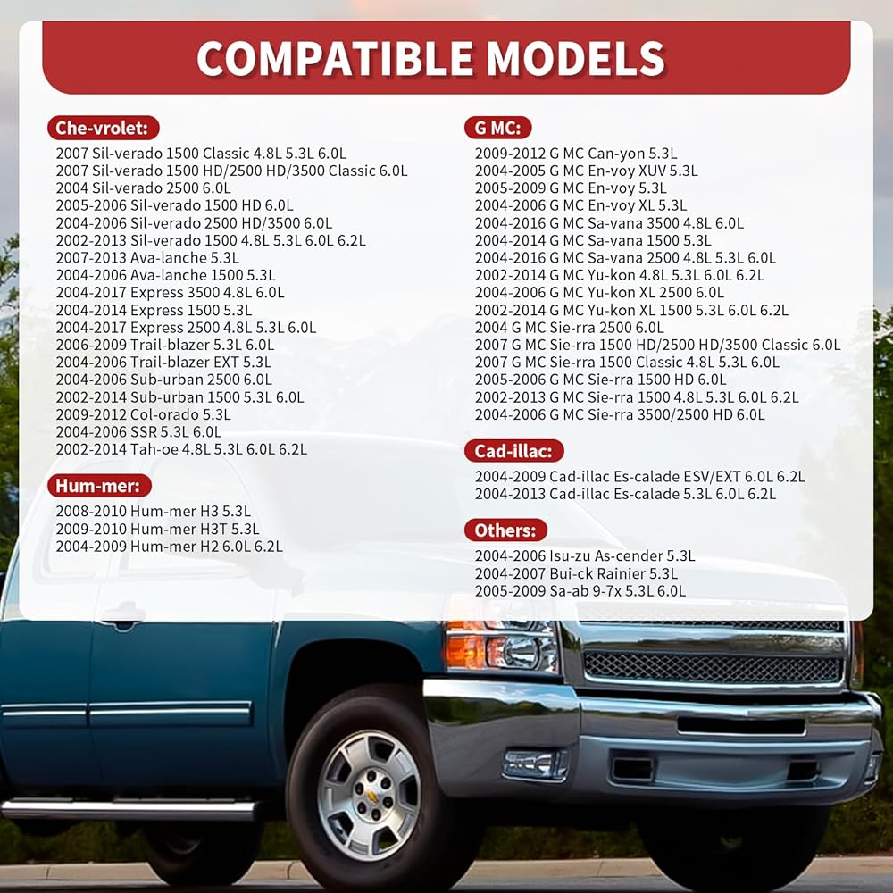 [التوافق] مجموعة حشية مشعب السحب مناسبة لنماذج محركات V8 Che-vrolet Sil-verado 1500/2500/1500 HD/2500 HD/3500 Classic، Ava-lanche 1500، Suburban 1500/2500؛ جي إم سي سا-فانا 1500/2500/3500، يو-كون/يو-كون XL/يو-كون XL 1500، سي-را 1500/2500/1500 HD/2500 HD/3500 كلاسيكي؛ هام-مير H3/H3T/H2؛ كا-ديلاك Es-calade ESV/EXT. تحقق من وصف المنتج للحصول على نماذج أكثر توافقًا