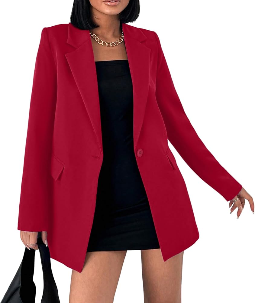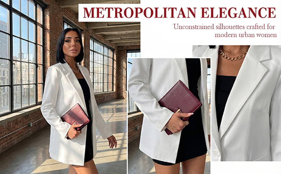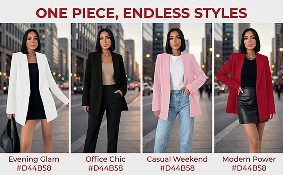 【تصميم أنيق】سترات نسائية للعمل كاجوال مصممة بياقة مقلوبة ومزدوجة الصدر وفضفاضة، مما يخلق مظهرًا عصريًا لا يتأثر بمرور الزمن. سترات بليزر للنساء تتميز بجيوب ذات قلاب وتجمع بين التطبيق العملي والمظهر المصقول