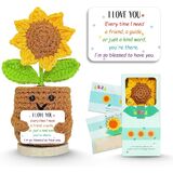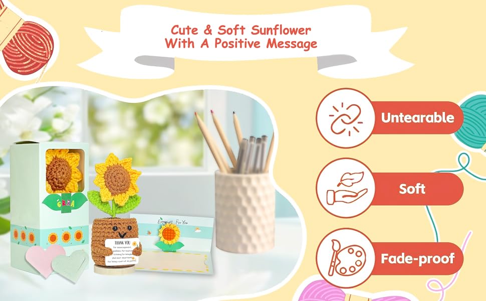 🌟 دمية كروشيه إيجابية: كل قطعة عباد الشمس من الكروشيه مصنوعة يدويًا بمحبة، مقترنة ببطاقة صادقة تقدم رسالة راقية. إنه العناق الصغير المثالي لإضفاء البهجة على يوم أحبائك - ورسم البسمة على وجوههم!