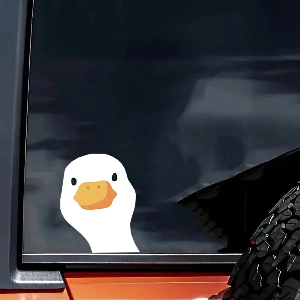 قطعتان من ملصق مصد السيارة المضحك برأس الإوزة البيضاء اللطيفة، ملصق من الفينيل مقاس 6 بوصات، مقاوم للماء، مقطوع بالقالب للسيارات والنوافذ وأجهزة الكمبيوتر المحمولة