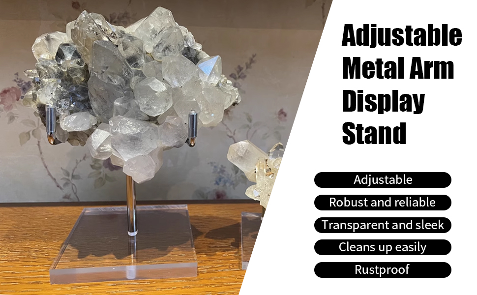 تطبيقات متعددة الاستخدامات: مناسبة للمنزل أو المعرض أو الاستخدام التجاري، كل حامل عرض ذراع معدني قابل للتعديل مثالي للصور والكريستال والبطاقات والجيود، مما يوفر خيارات استخدام مرنة مع وظيفة حامل العرض.