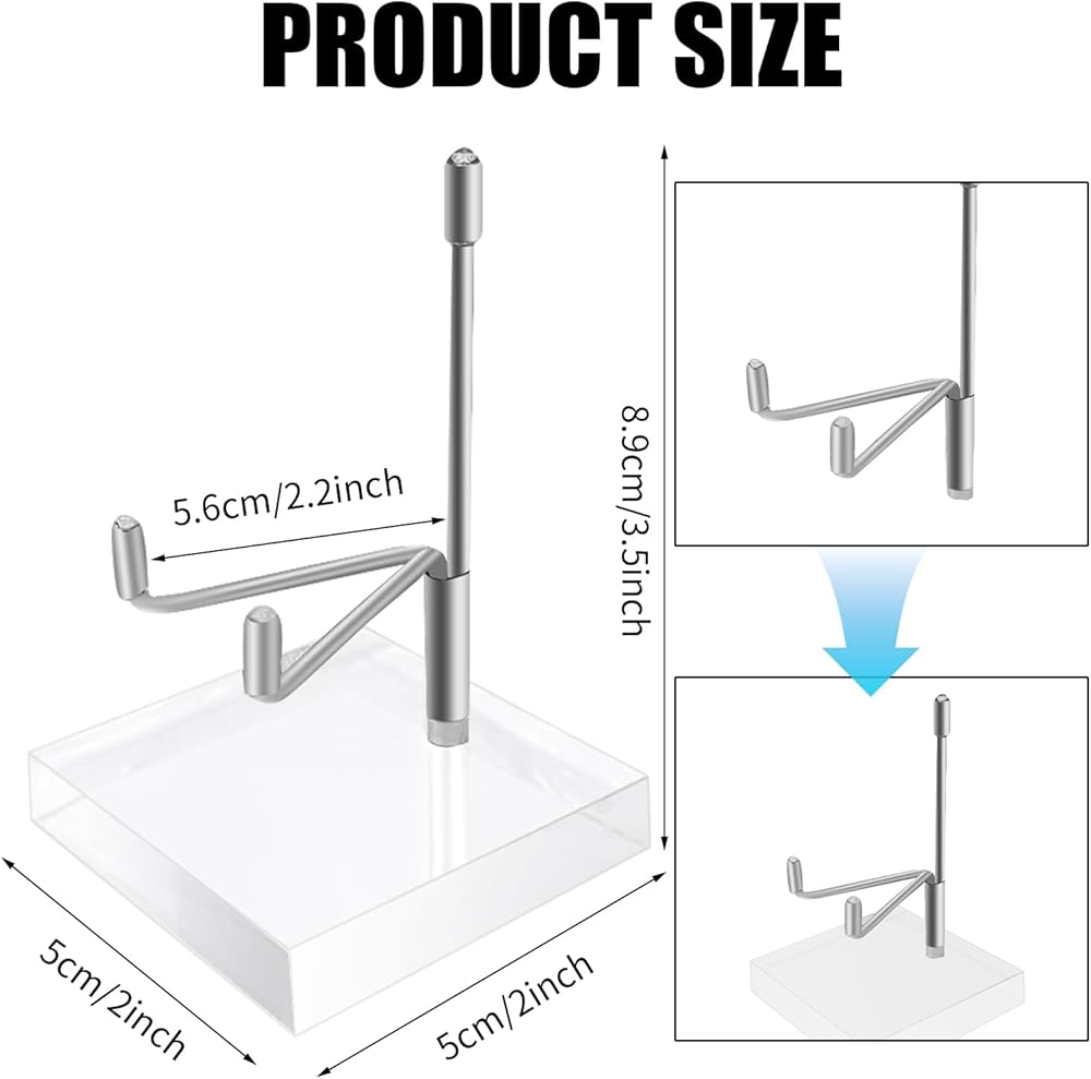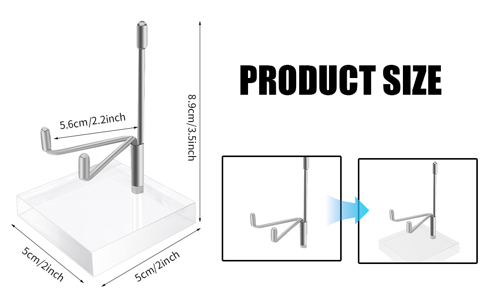 الحجم المثالي: يبلغ مقاس كل حامل عرض ذراع معدني قابل للتعديل حوالي 2 × 2 × 3.5 بوصة، مما يوفر نسبًا مناسبة لمجموعة من العناصر بما في ذلك الكتاب أو الصورة أو اللوحة أو الصخور على الشاشة