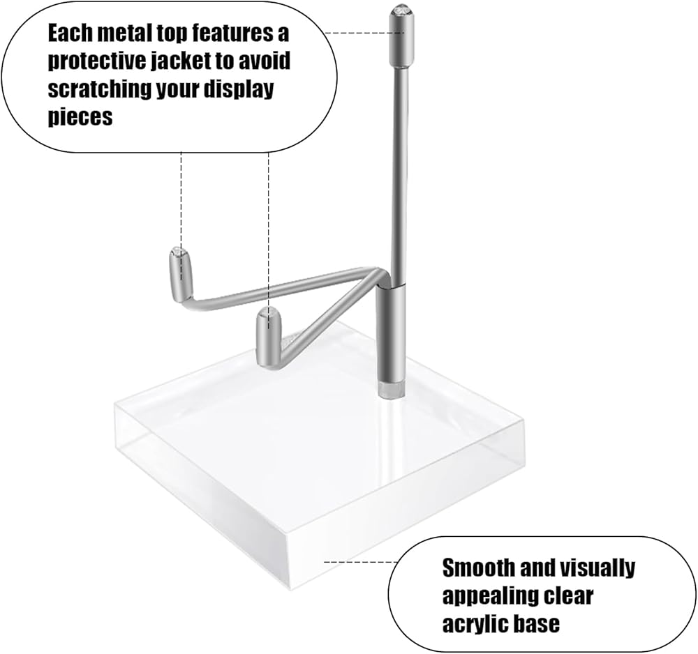 مواد موثوقة: يتميز حامل عرض الذراع المعدني القابل للتعديل بهيكل معدني وأكريليك، ويجمع بين الهيكل الصلب والأناقة من الأذرع المعدنية الفضية وقاعدة شفافة في كل حامل عرض ذراع معدني قابل للتعديل