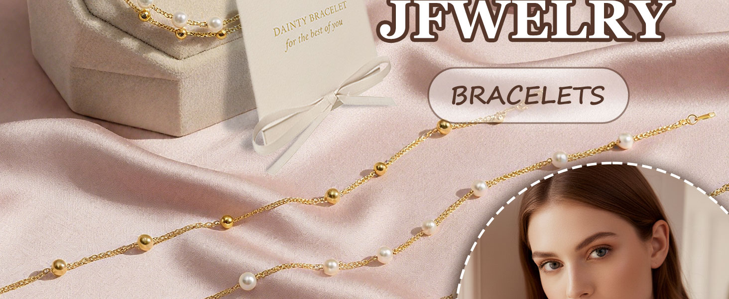تصميم أنيق ومدروس: تتميز كل حقيبة مجوهرات مخملية بتصميم أنيق مع رسالة "DAINTY BRACELET for the Best of You" القلبية، ترمز إلى الامتنان والحب. مزيج كلاسيكي من اللؤلؤ والذهب يناسب أي موضوع أو نمط زفاف. سواء تم ارتداؤها منفردًا للحصول على مظهر خالد أو مكدسة لإضفاء لمسة عصرية، فإن هذه الأساور اللؤلؤية للسيدات تكمل أي زي بشكل جميل