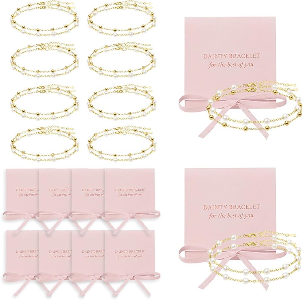 مجموعة مجوهرات اللؤلؤ الكاملة: مجموعة هدايا وصيفة العروس المكونة من 24 قطعة تتضمن 8 أساور لؤلؤ أنيقة، و8 أساور خرز ذهبية من الفولاذ المقاوم للصدأ، و8 حقائب مجوهرات مخملية ناعمة. يتم تعبئة كل قطعة بشكل فردي، مما يضمن حصول كل وصيفة العروس على مجموعة كاملة وجميلة من مجوهرات اللؤلؤ. مع كمية كافية لحفل زفافك، إنها الطريقة المثالية لإظهار تقديرك لوصيفات العروس