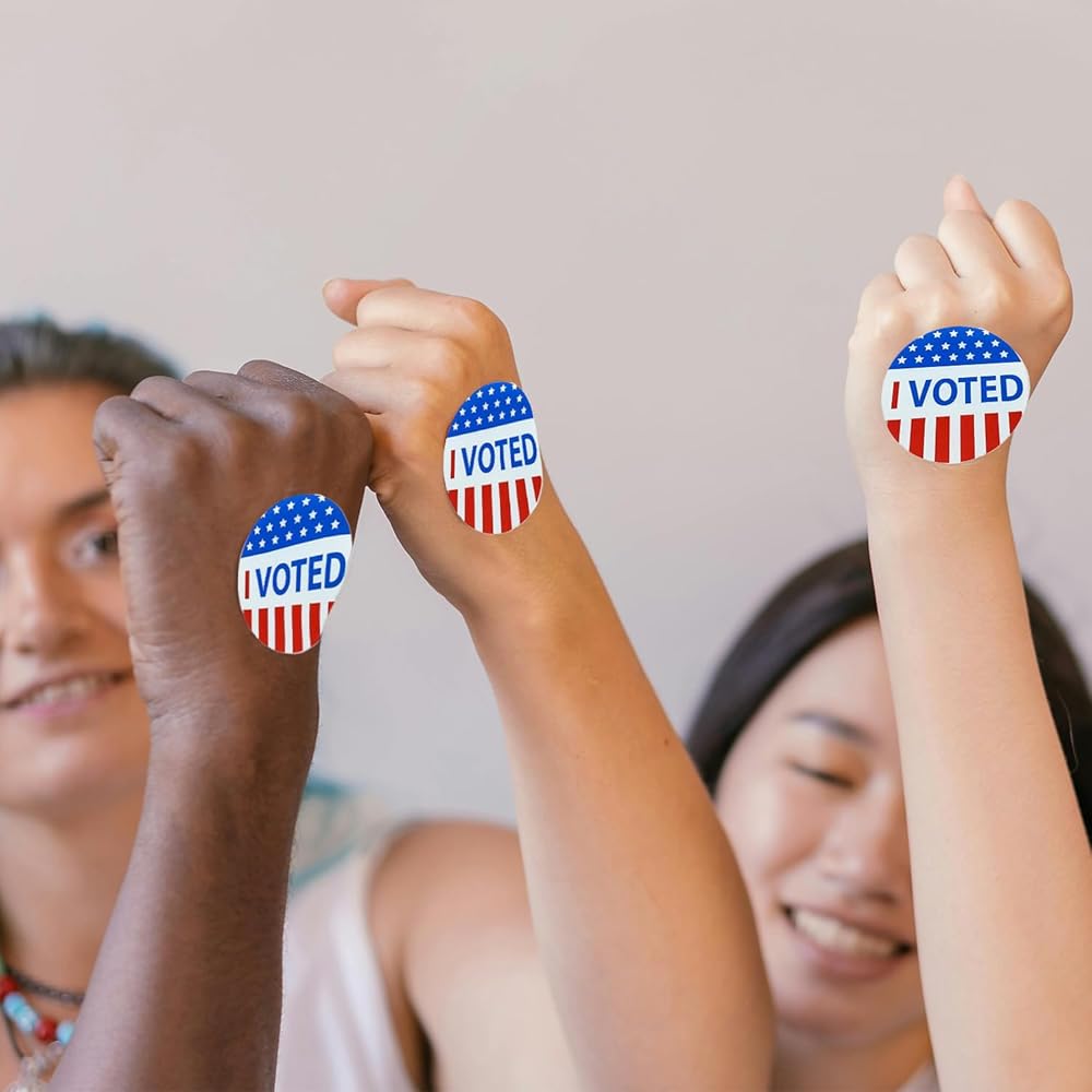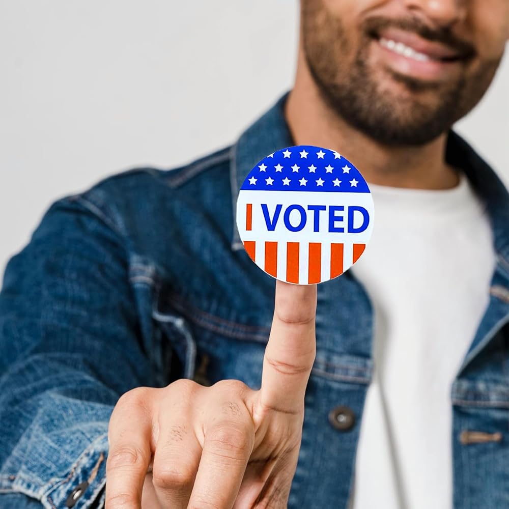 "I Voted" stickers, the perfect way to proudly display your participation in the democratic process! These vibrant, high-quality stickers are designed to make a bold statement.