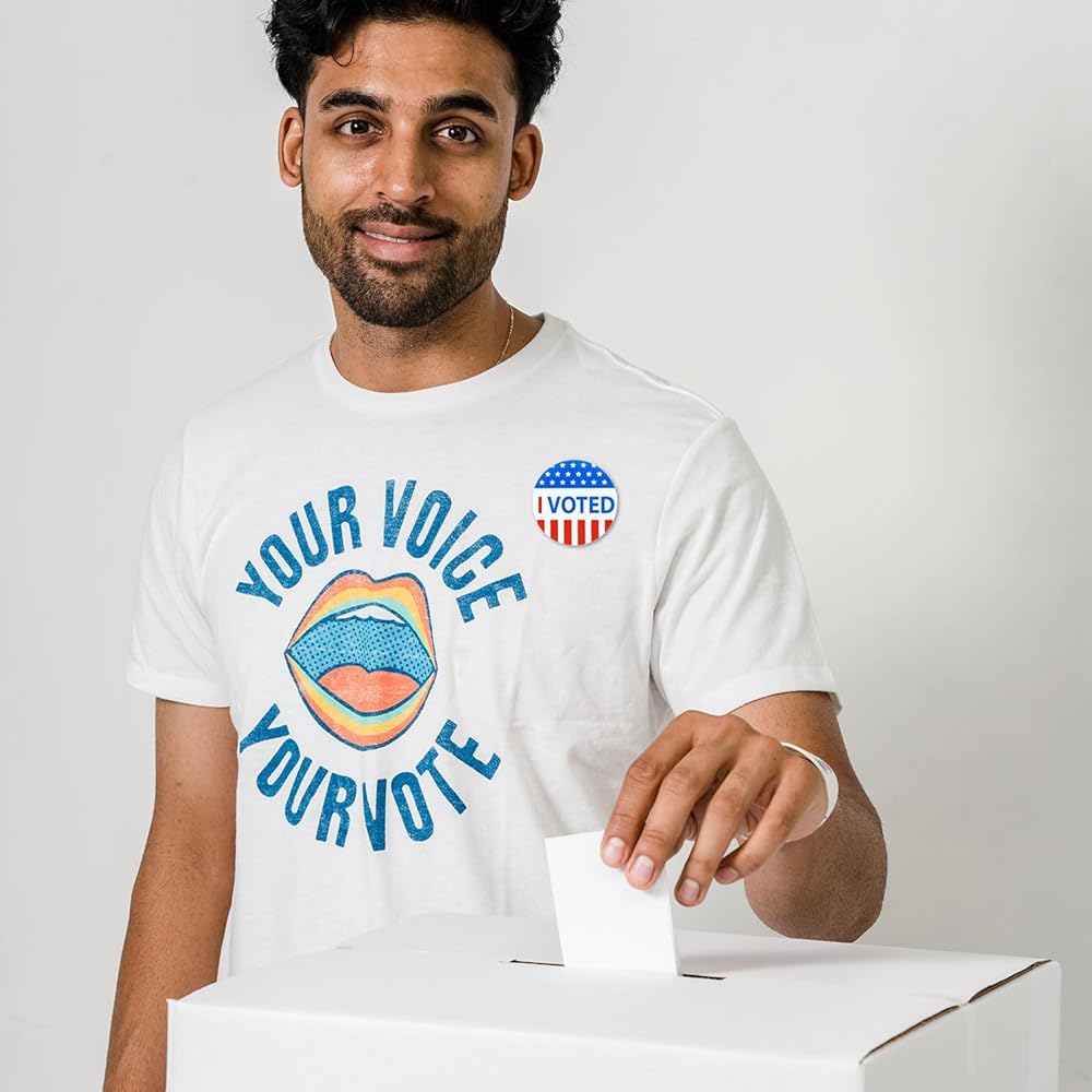 The words "I Voted" are prominently displayed in a clear, easy-to-read font, ensuring your voice is seen.